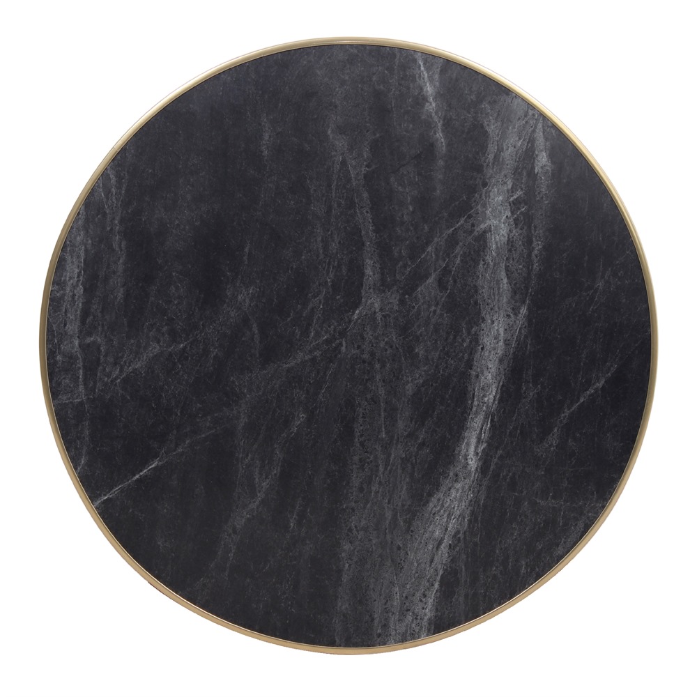 Plateau de table en contreplaqué stratifié avec placage laminé en finition calacatta, cadre en aluminium finition laiton. Épaisseur de 2,5 cm.