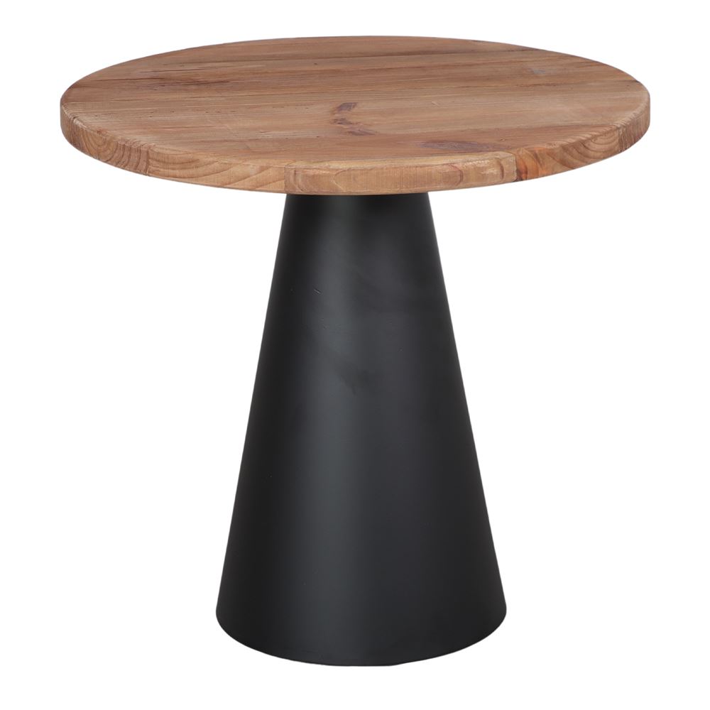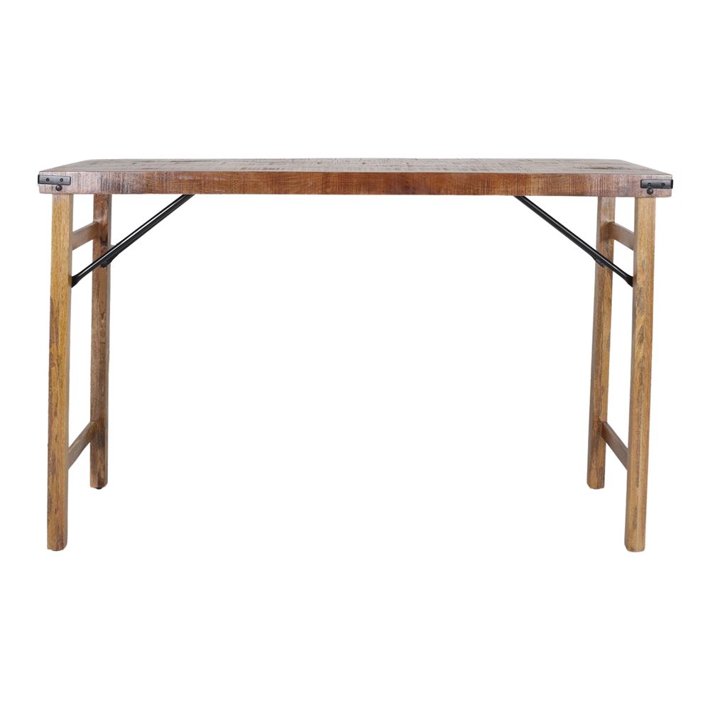 Table haute de style industriel/vintage, fabriquée en bois tropical effet ancien. Pieds pliables.