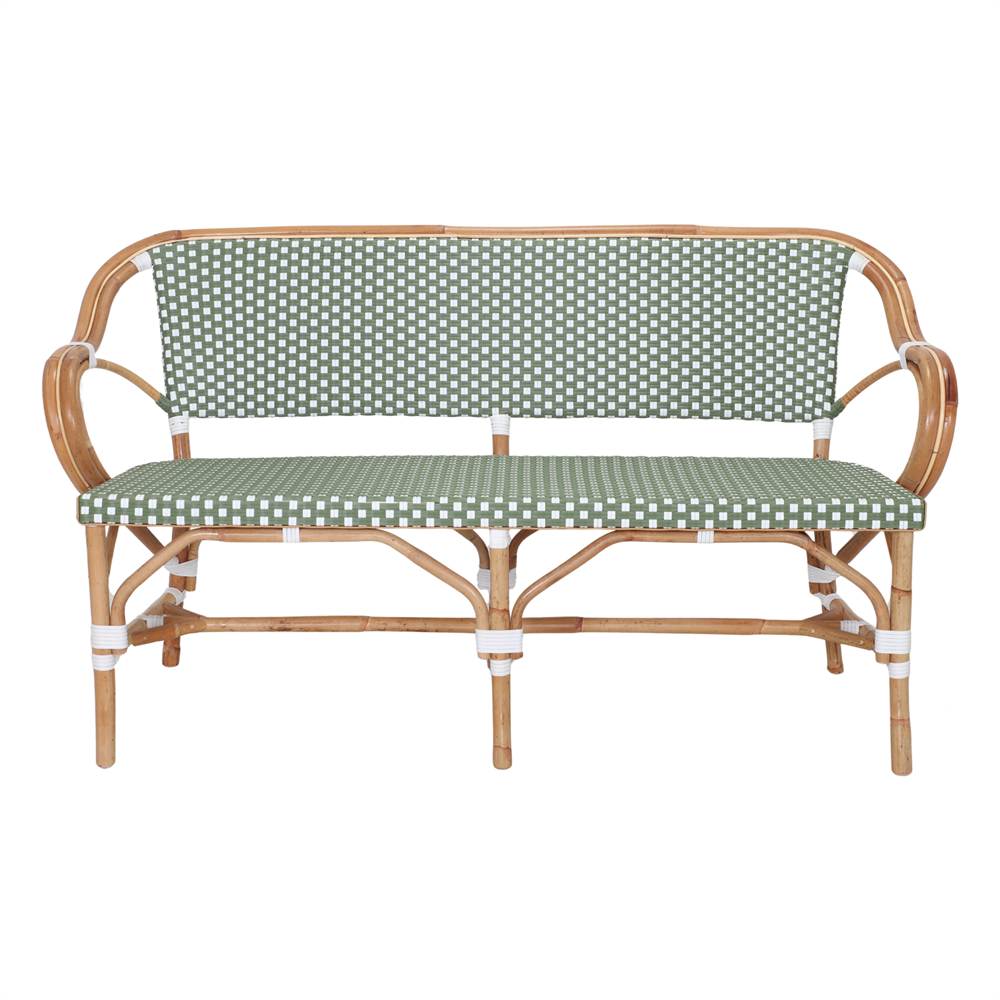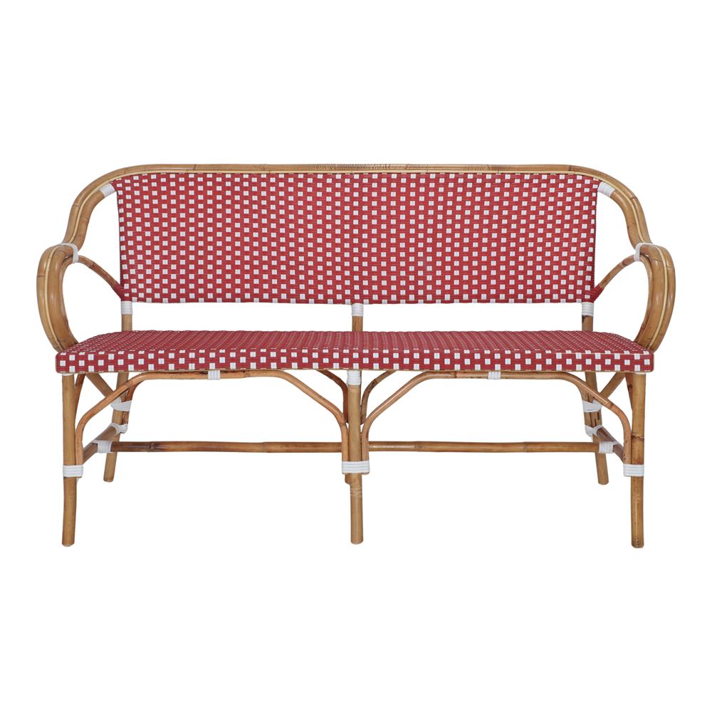 Le banc en rotin Isona est parfait pour les espaces de style bistrot. Disponible en rouge, bleu et vert, ce banc confortable est fabriqué en bambou et en fibre de rotin synthétique.