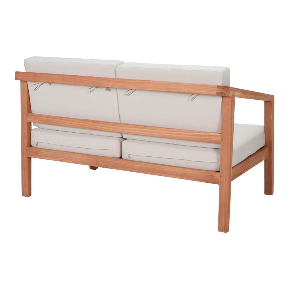 Les coussins, recouverts d’un tissu de haute qualité, ajoutent une touche de douceur et de confort, faisant de la banquette Jason un endroit idéal pour s’asseoir et se détendre. La combinaison entre la robustesse du teck et la légèreté visuelle du revêtement crée un équilibre harmonieux, parfait pour les salons, les halls d’entrée ou les coins lecture.