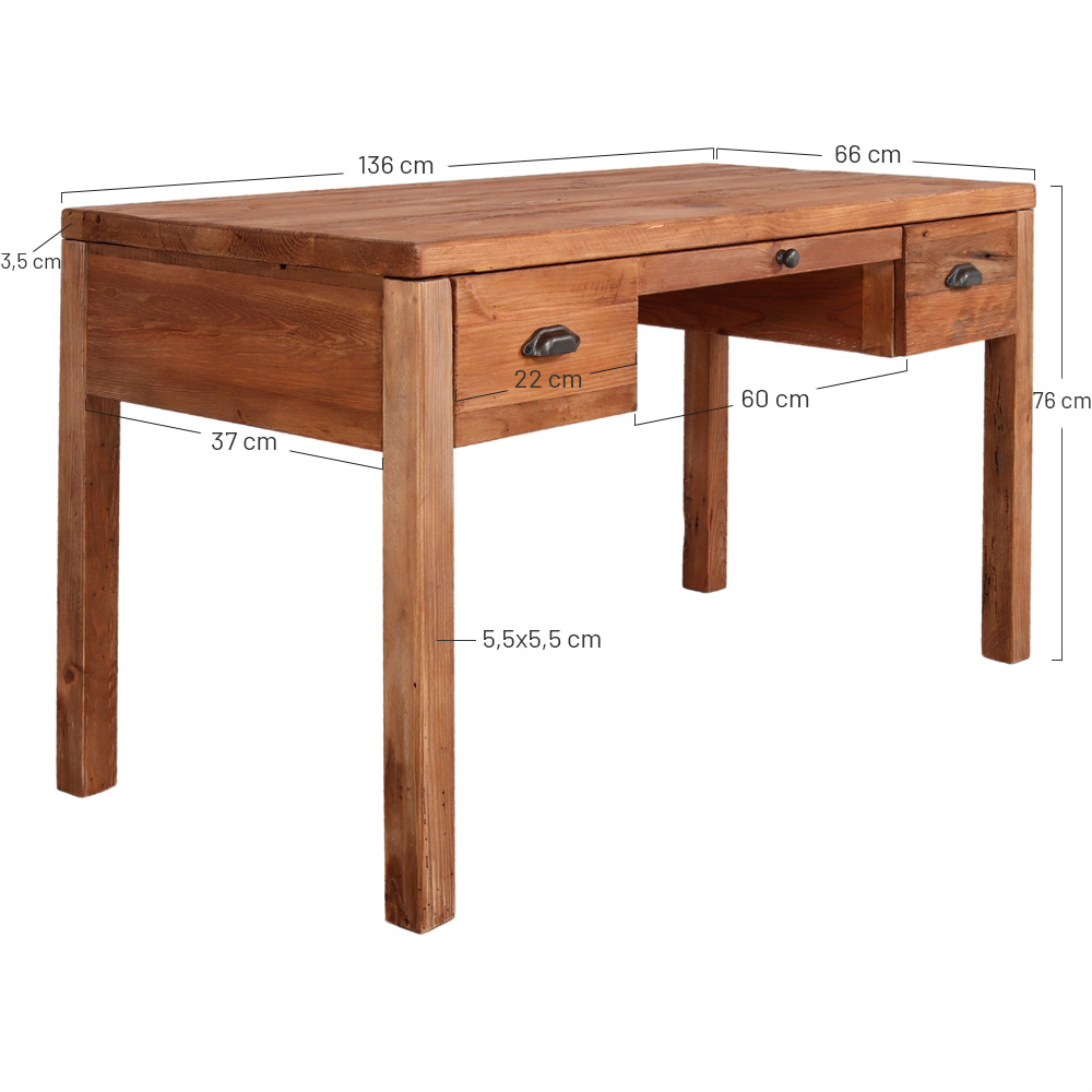 Le bureau en bois Tassel est une pièce parfaite pour un intérieur de style Rustique. Fabriqué en bois de pin massif recyclé, ce bureau possède 3 tiroirs avec ouverture frontale pour le rangement. Un meuble résistant avec beaucoup de charme, avec lequel vous donnerez une touche organique à votre bureau ou espace de travail.