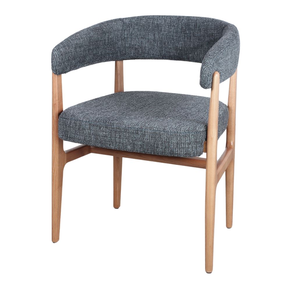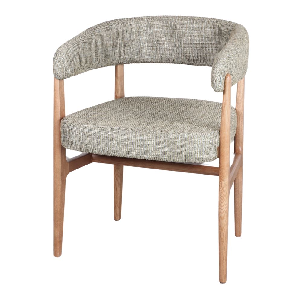 L’assise et le dossier sont délicatement recouverts de tissu, un matériau doux et résistant qui ajoute une touche de confort et d’élégance. La combinaison du bois tourné et du tissu crée un contraste harmonieux qui reflète l’esthétique scandinave et s’intègre facilement dans divers espaces intérieurs.