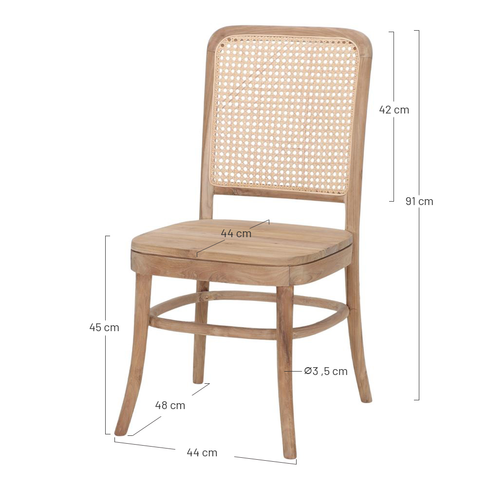 Un design classique est ce qui caractérise notre chaise en bois Nelly. Fabriquée en bois de teck, c’est une chaise légère et confortable. Avec une belle finition en rotin naturel sur le dossier et un tissage de type cannage, cette chaise est le meuble idéal pour ajouter une touche d’originalité et de design à votre intérieur.