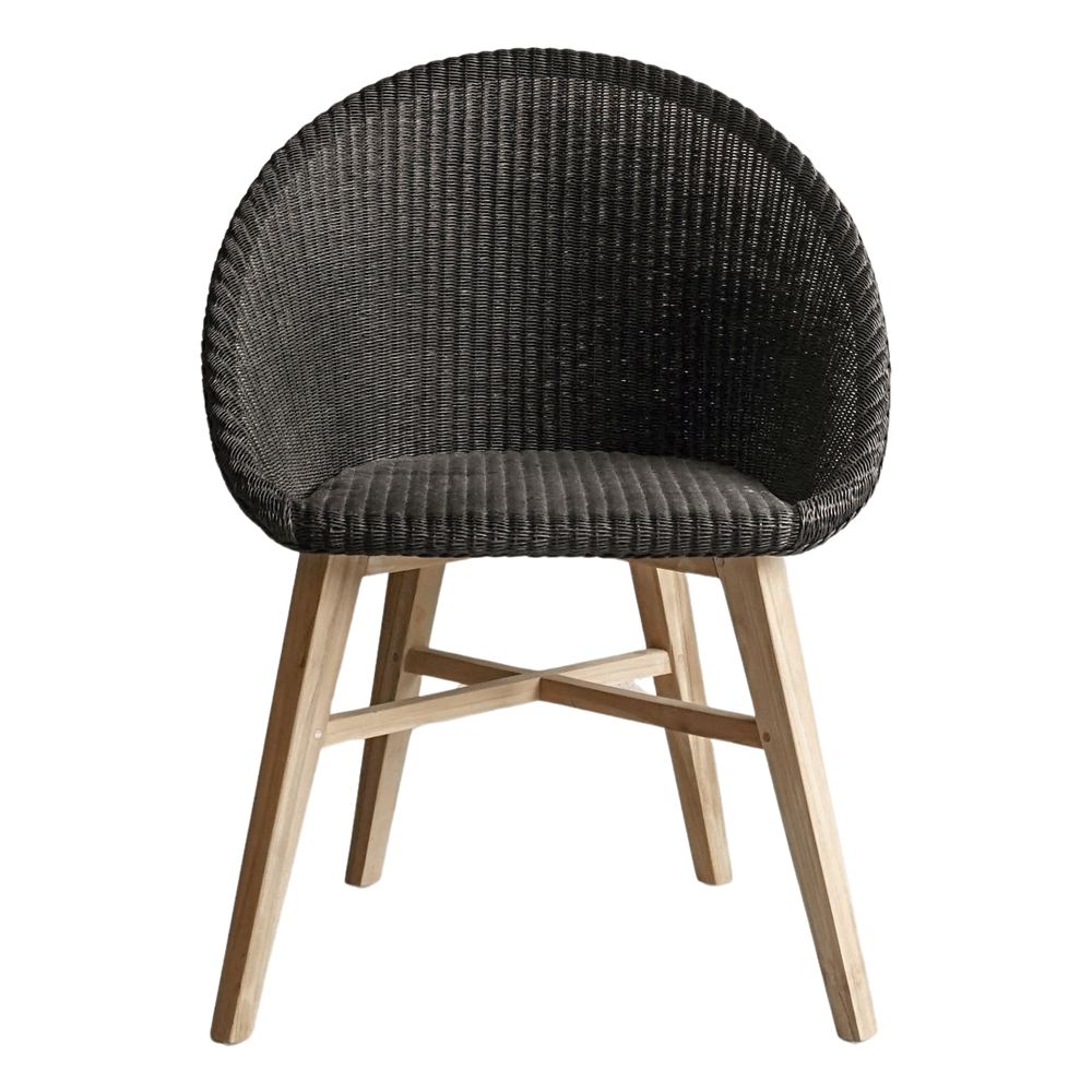 L’assise et le dossier sont en rotin synthétique tressé, un matériau qui imite à la perfection la chaleur et la texture du rotin naturel, mais avec l’avantage d’être beaucoup plus résistant à l’humidité et à l’usure. Ce mélange de matériaux crée un design frais, léger et accueillant, idéal pour ceux qui recherchent un mobilier apportant une touche décontractée et intemporelle.