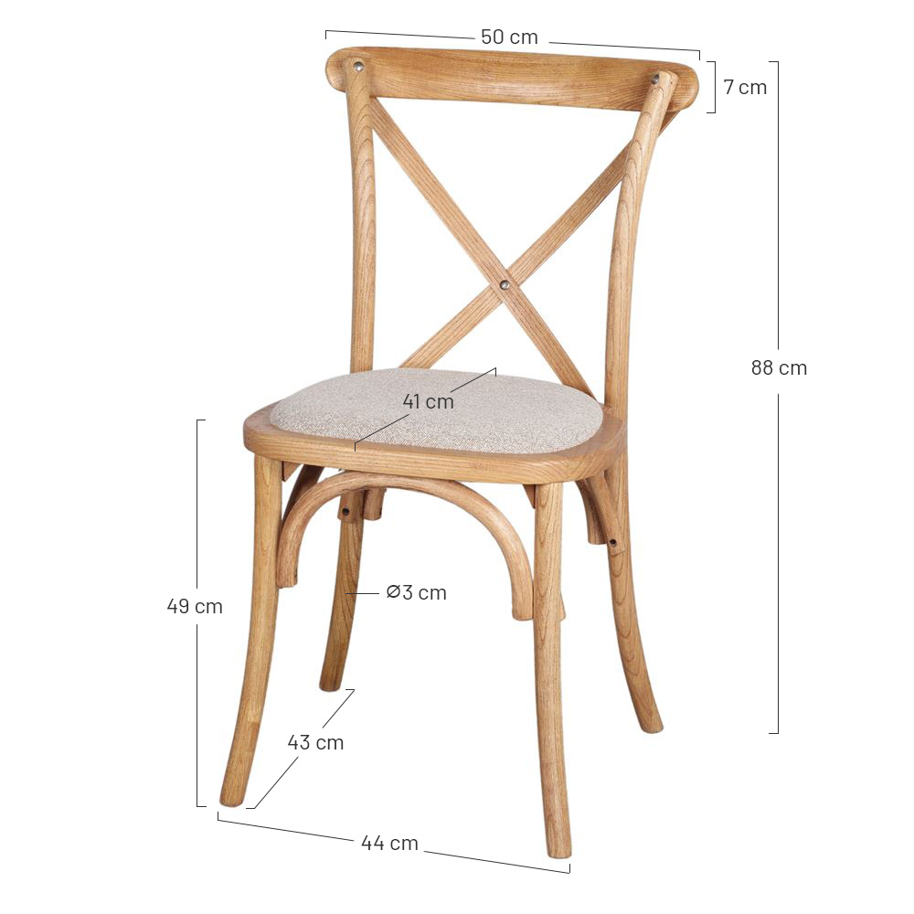 Dossier en croix et revêtement d’assise en tissu.