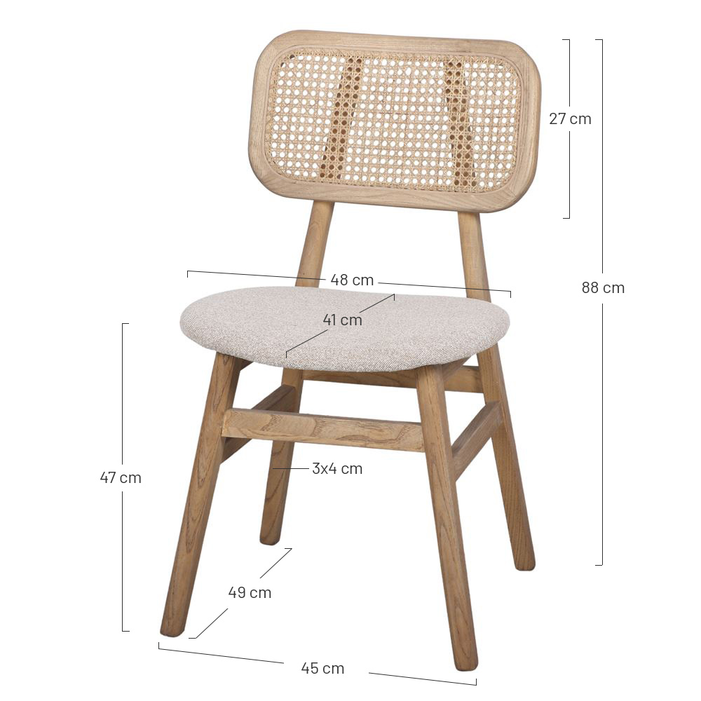 Asseyez-vous dans une des plus grandes tendances de la saison avec nos chaises en bois et en rotin naturel. Le rotin est sur le point d’arriver dans tous les intérieurs et ce n’est pas une surprise : son tissage solide donne de la texture au look et a été utilisé dans certains des designs les plus iconiques de tous les temps. Sa combinaison avec du bois et ses courbes confortables et élégantes sont la recette d’une pièce originale qui donnera une petite touche vintage à votre coin salle à manger ou quel que soit la pièce où vous l’utiliserez. L’assise est également matelassée et apporte le confort attendu.