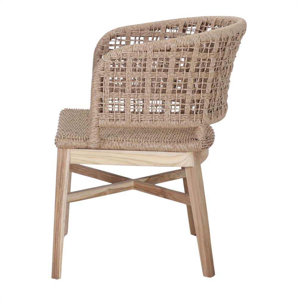 La chaise en bois Wisla est un meuble qui allie design, confort et l’essence intemporelle du style méditerranéen. Sa structure est fabriquée en bois massif de teck, l’un des bois les plus résistants et durables, capable d’apporter chaleur et caractère à n’importe quel espace. L’assise et le dossier, en corde synthétique tressée, ajoutent une touche artisanale qui amplifie la légèreté visuelle et la fraîcheur propres aux environnements côtiers. Chaque détail de la chaise Wisla reflète un équilibre soigné entre fonctionnalité et esthétique. La corde tressée offre non seulement un soutien ferme et ergonomique, mais introduit également une texture naturelle qui renvoie à la sérénité de la vie méditerranéenne. Son design ouvert et organique favorise la ventilation et transforme chaque pièce en un lieu accueillant et relaxant. Grâce à la qualité du bois de teck, cette chaise s’adapte parfaitement aux intérieurs à l’esprit naturel, aux salles à manger rustiques-chics ou aux terrasses couvertes où l’on recherche un mobilier résistant et élégant. Elle est conçue pour être utilisée à l’extérieur sous abri tout en conservant intacte sa beauté d’origine. La chaise Wisla est une invitation à profiter des moments quotidiens avec style, confort et authenticité.