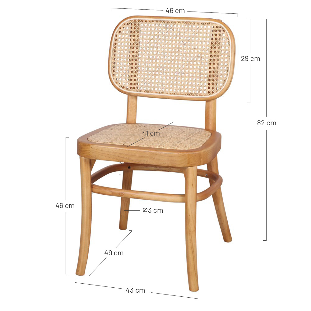 Les fibres naturelles sont à la mode, et maintenant plus que jamais, la durabilité est un critère important, et les meubles en bois et fibres naturelles s’y conforment parfaitement. La chaise en bois BIANCA est en bois et rotin naturel, son dossier est tressé façon cannage et l’assise est en résille. Une assise très confortable, au style vintage, qui nous transporte dans une époque révolue. Si vous aimez cette chaise en bois, combinez-la avec nos lampes en fibres naturelles ou nos tables en bois et créez une oasis de matériaux naturels.