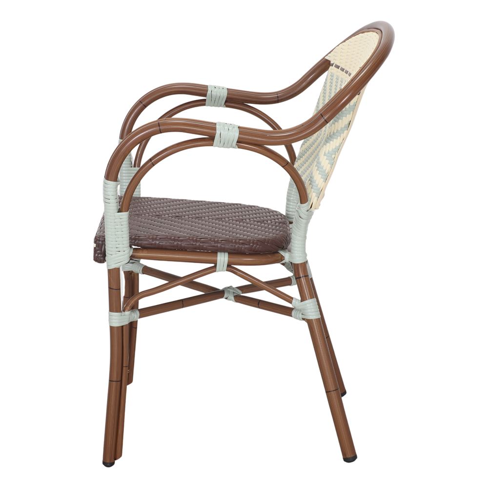 La chaise d’extérieur Ekamia est une proposition de style bistrot qui allie un design classique à des matériaux modernes, idéale pour créer des ambiances fraîches, accueillantes et avec une touche parisienne, aussi bien à l’extérieur qu’à l’intérieur. Sa silhouette légère et intemporelle s’adapte parfaitement aux terrasses, jardins, porches ou espaces intérieurs au charme naturel. Sa structure tubulaire en aluminium garantit résistance et légèreté, idéale pour un usage fréquent sans compromettre sa durée de vie. La finition imitation bambou apporte une chaleur visuelle et une touche organique qui s’intègre facilement dans tous types d’espaces. L’assise et le dossier sont fabriqués en fibre de rotin synthétique tressé, un matériau conçu pour résister aux conditions climatiques sans se détériorer, tout en conservant son aspect attrayant et son confort au fil du temps. Outre son design élégant, la chaise Ekamia est empilable, ce qui facilite son rangement et la rend particulièrement pratique pour les espaces multifonctionnels ou les restaurants. Sa polyvalence permet de l’utiliser aussi bien à l’intérieur qu’à l’extérieur, sans perdre en style ni en fonctionnalité. La chaise d’extérieur Ekamia est le choix idéal pour ceux qui recherchent un meuble décoratif durable, esthétique et confortable, alliant le charme du design traditionnel et la technologie des matériaux contemporains.