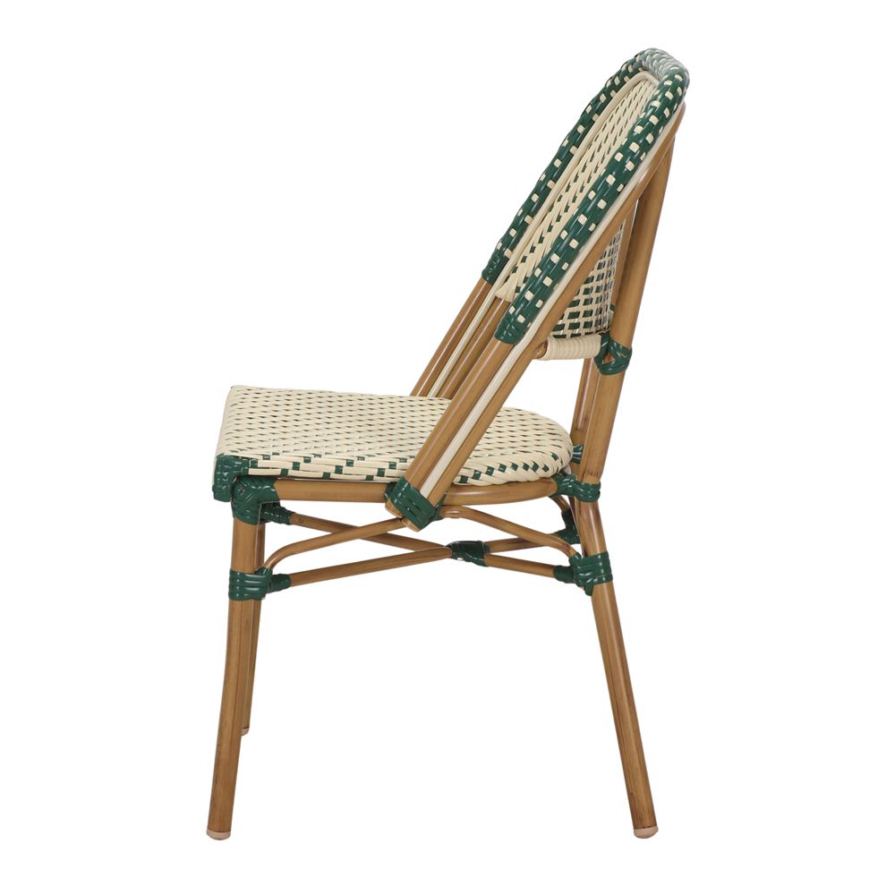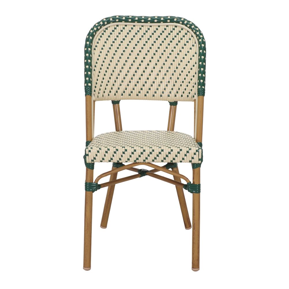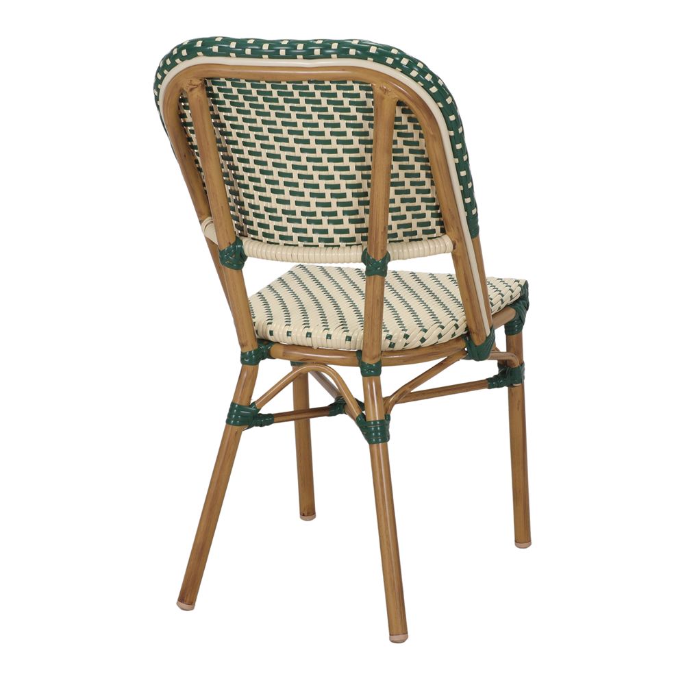 La chaise d’extérieur GURU est empilable, elle est fabriquée en aluminium imitant le bambou, et le tressage de son assise et de son dossier est en fibre de rotin synthétique. De style bistrot, cette chaise est idéale pour recréer une ambiance « cafés parisiens », avec personnalité et design. Elle peut être utilisée aussi bien dans un restaurant que sur la terrasse de votre maison. Associez-le avec notre table KRONOS et obtenez le style que vous aimez tant.