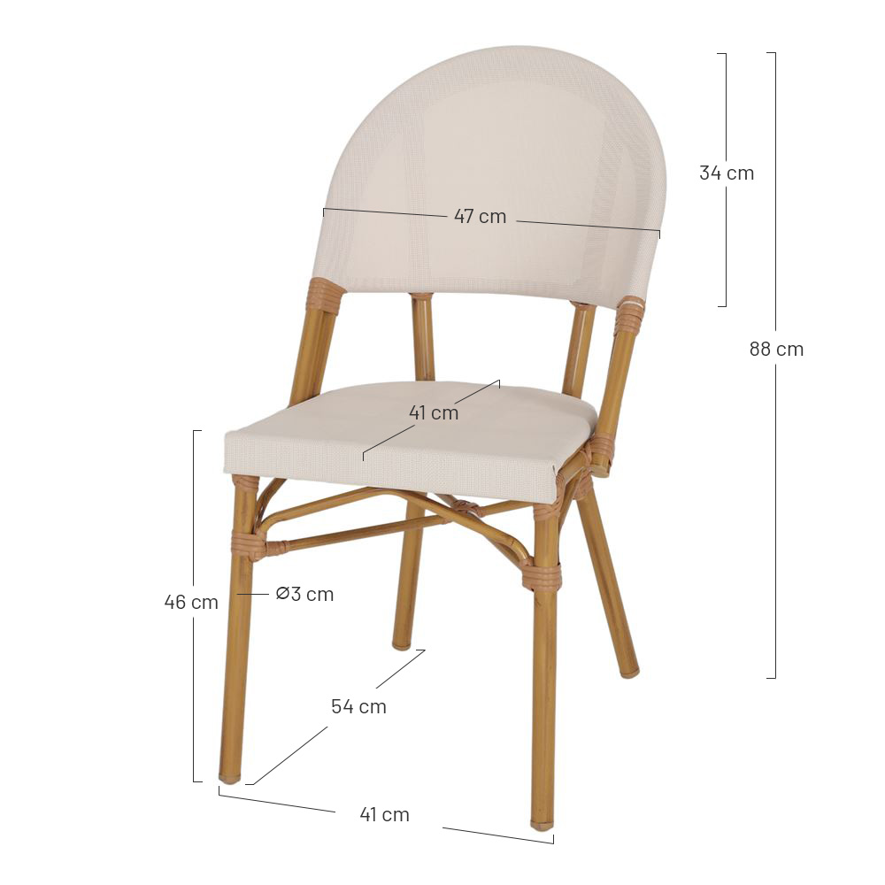 Vous aimerez ce modèle de chaise d’extérieur pour leur robustesse et leur élégance associées à une touche de modernité. Avec leur style intemporel, vous pourrez aussi bien les installer autour de votre table de jardin que sous votre véranda ou même dans votre intérieur. Elles s’harmoniseront également parfaitement à tout type de mobilier de jardin. Leur assise, très agréable grâce à la souplesse du textilène, offre un confort que vos convives apprécieront. Par ailleurs, nous vous conseillons de les protéger à l’aide d’une housse de protection.