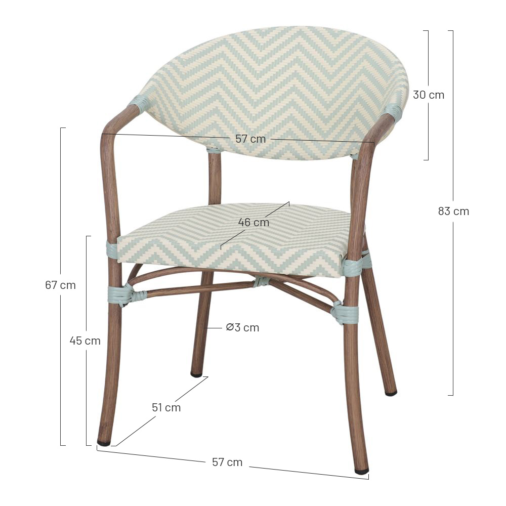 Dimensions : 57x58x83 cm | Hauteur de l’assise : 45 cm | Accoudoirs : 67-76 cm