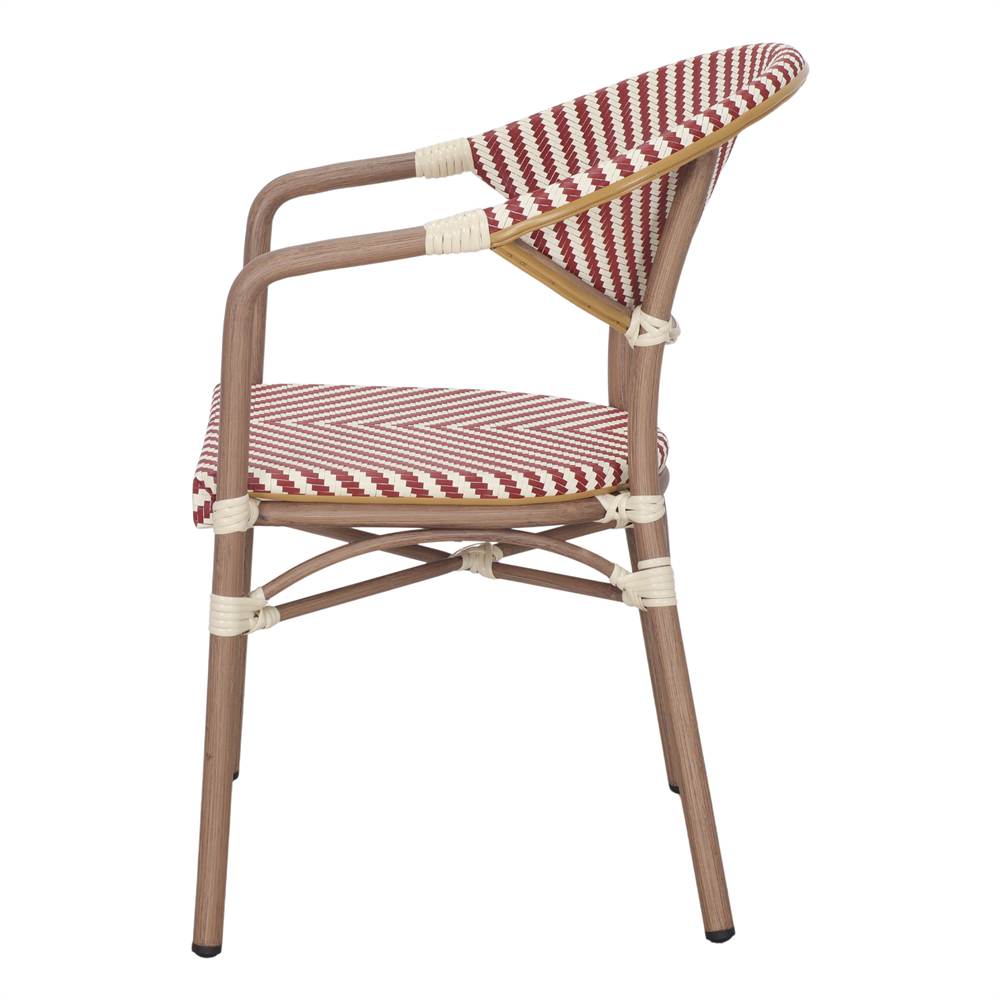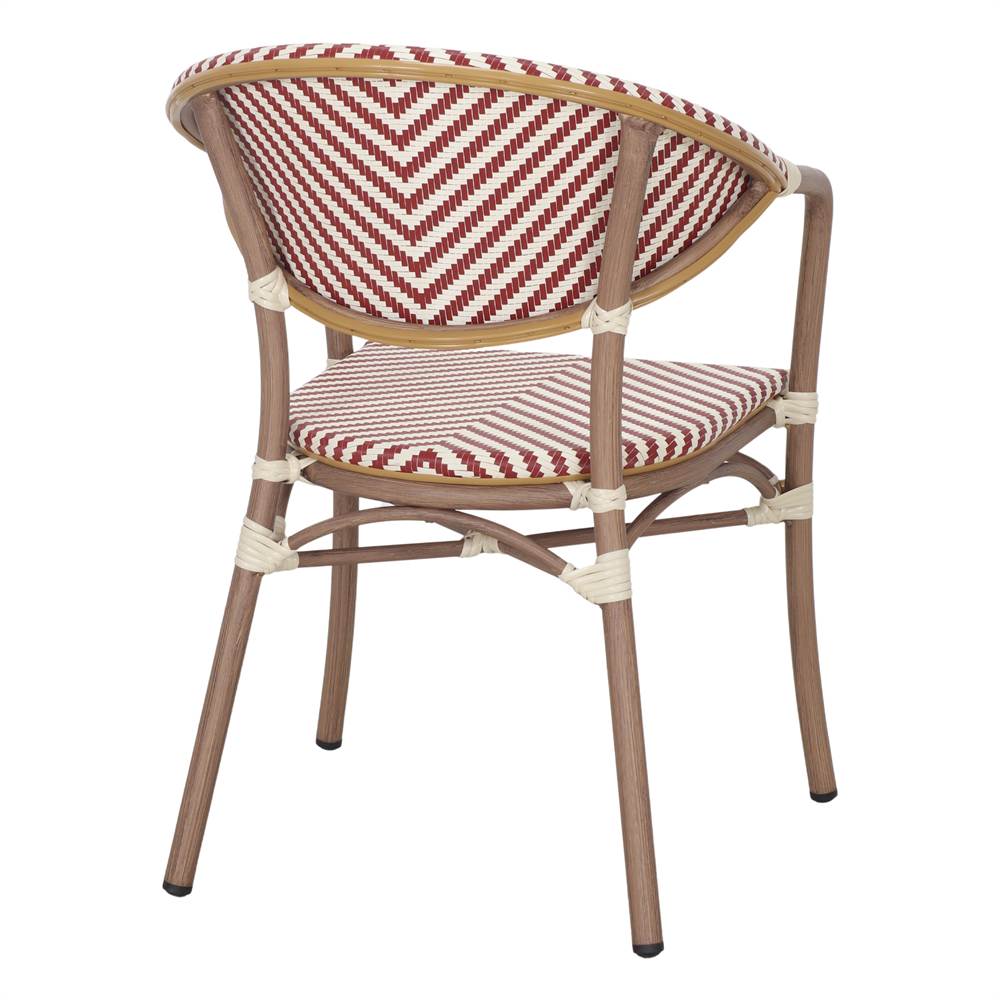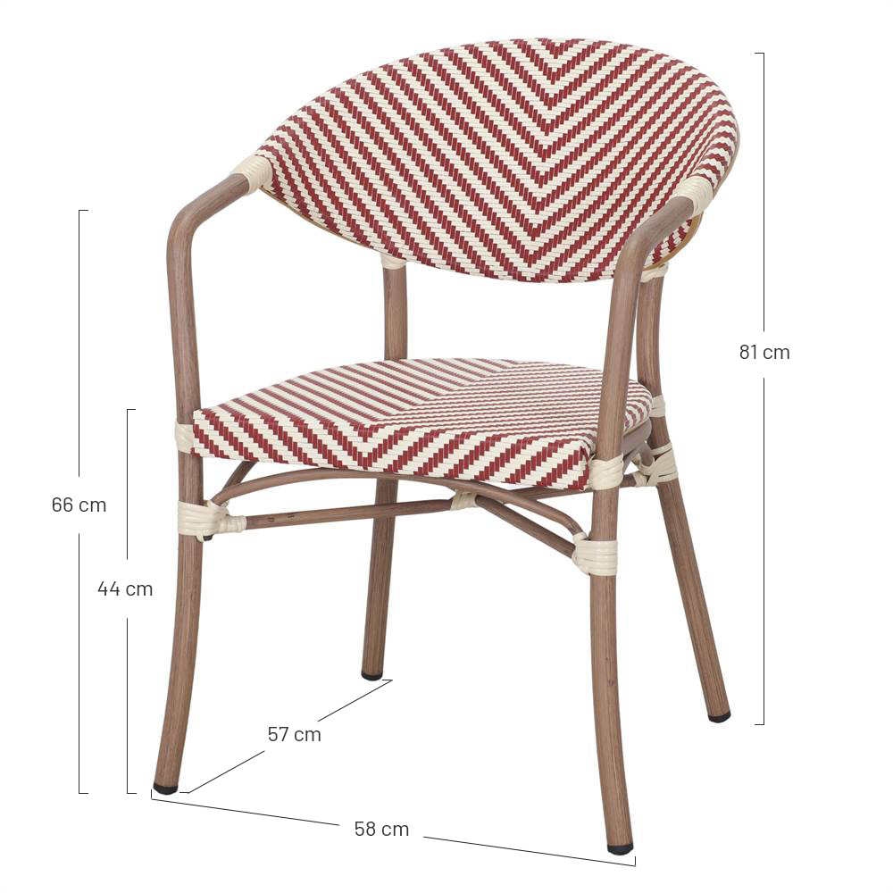 La chaise d’extérieur Ransom est un meuble qui allie charme traditionnel et fonctionnalité moderne, parfait pour les environnements extérieurs qui recherchent style et durabilité. Son design d’inspiration bistrot rappelle les cafés parisiens classiques, apportant une touche chaleureuse et élégante aux terrasses, patios, jardins ou espaces hôteliers. Elle est composée d’une structure tubulaire en aluminium, ce qui lui confère une grande légèreté sans compromettre sa résistance. Sa finition imitation bambou renforce son esthétique naturelle et chaleureuse, apportant une sensation organique sans les exigences d’entretien du bambou authentique. L’assise et le dossier sont en fibres de rotin synthétique, un matériau qui reproduit fidèlement la texture du rotin naturel tout en offrant une meilleure résistance aux intempéries. Cela en fait un matériau particulièrement adapté à une utilisation continue en extérieur, car il résiste à l’humidité, aux rayons UV et aux changements de température. De plus, la chaise Ransom est empilable, facilitant ainsi son rangement et son transport. Elle constitue donc un excellent choix pour les espaces qui nécessitent de la flexibilité, tels que les restaurants ou les terrasses résidentielles.