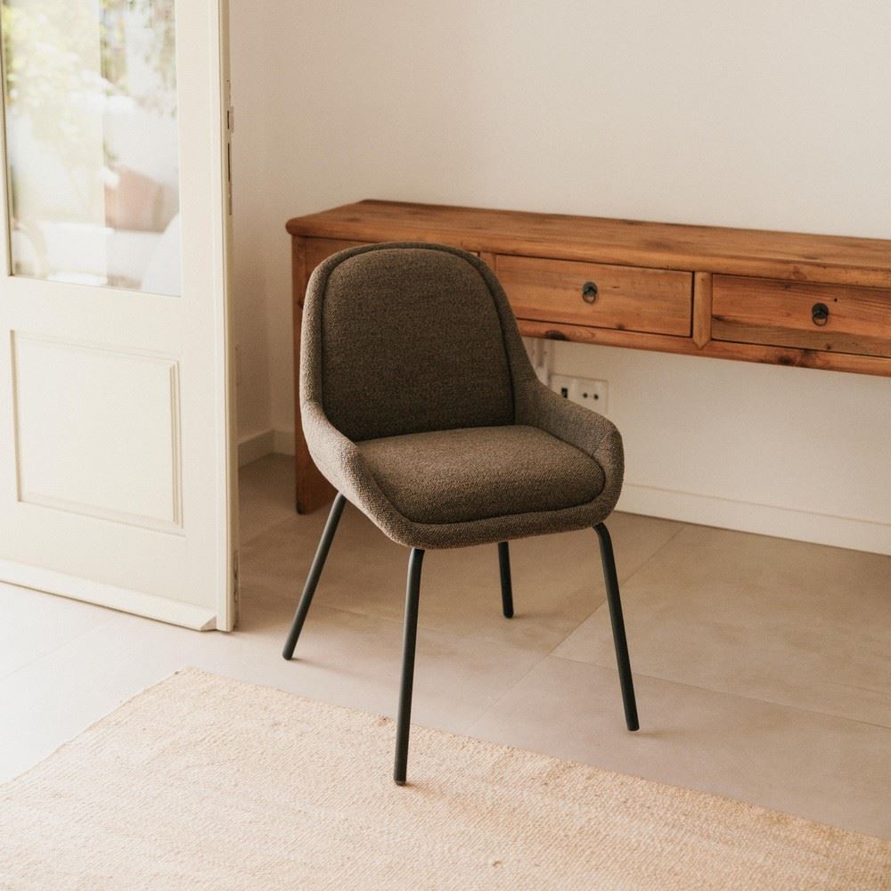 La combinaison de l’acier et du textile crée un contraste intéressant entre industriel et cosy. De plus, sa conception ergonomique fait de la chaise tapissée Olema une chaise parfaite pour une utilisation prolongée, ce qui en fait une pièce fonctionnelle pour un usage quotidien.