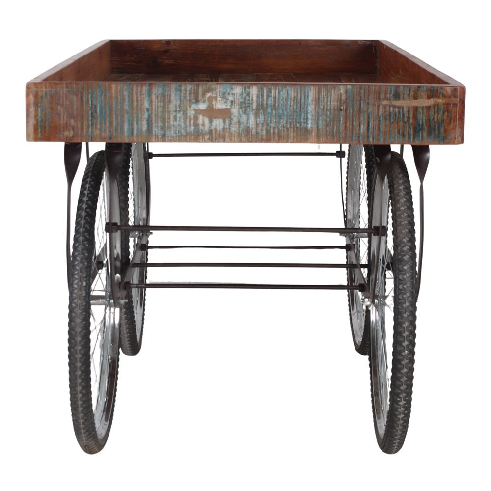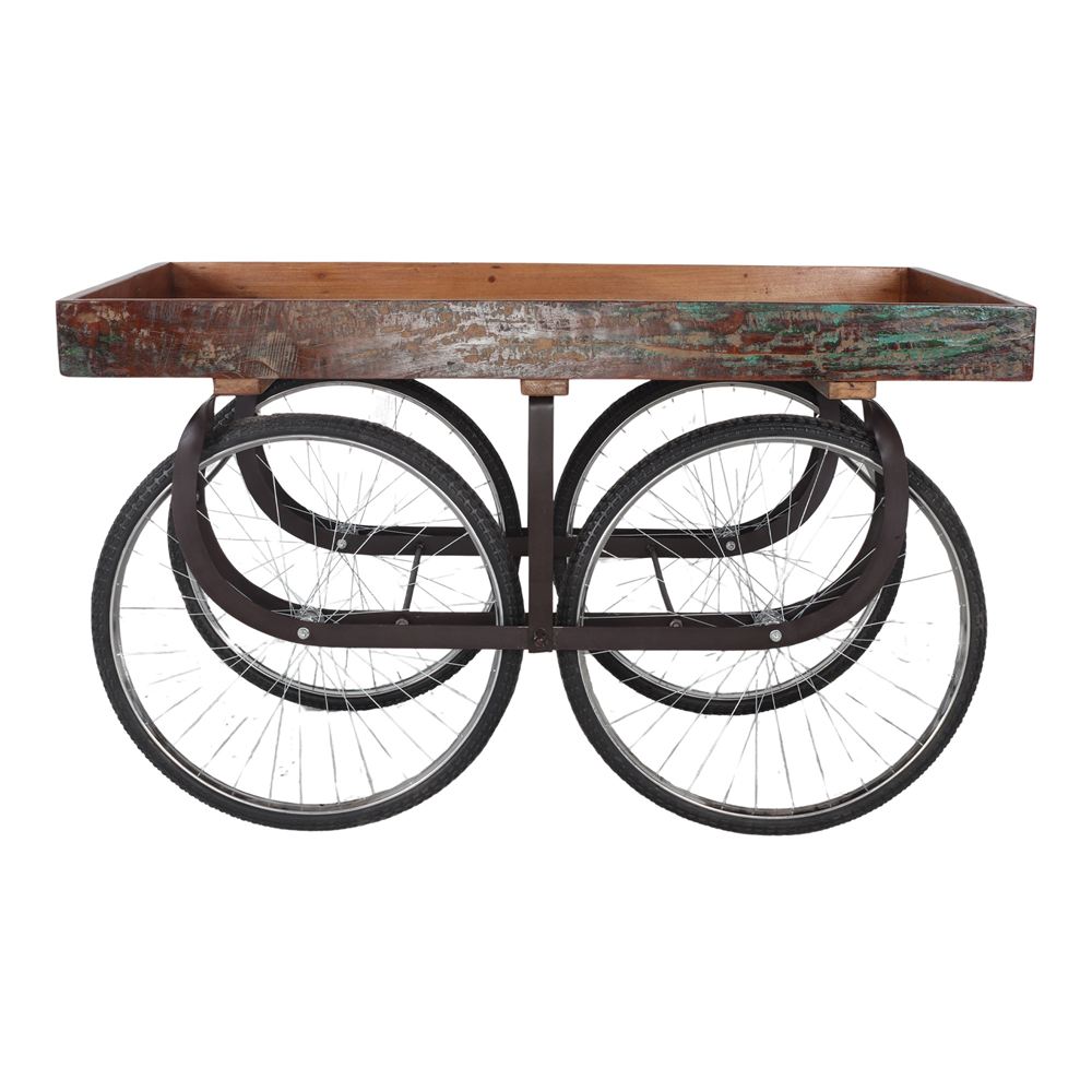 Structure en acier avec roues de vélo (taille 700c), avec une finition effet usé.