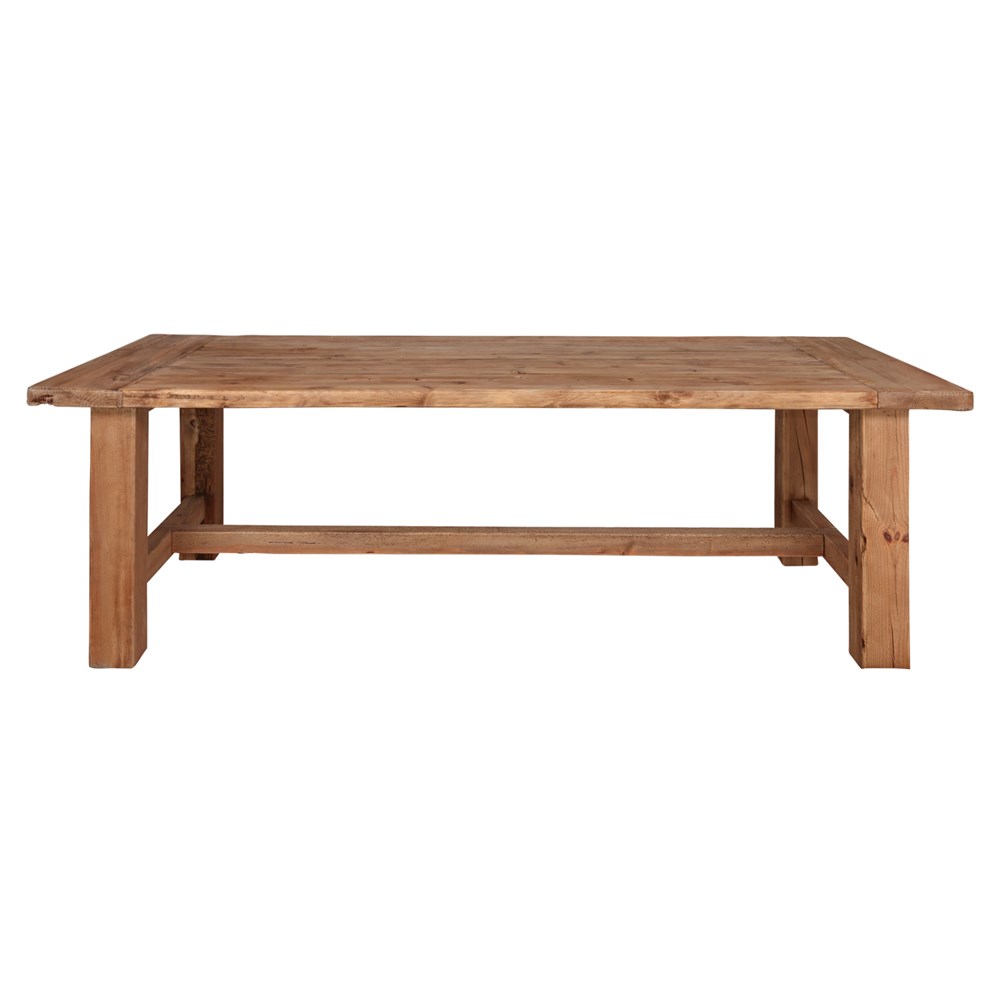 Table de style rustique vintage fabriquée en bois de pin recyclé.