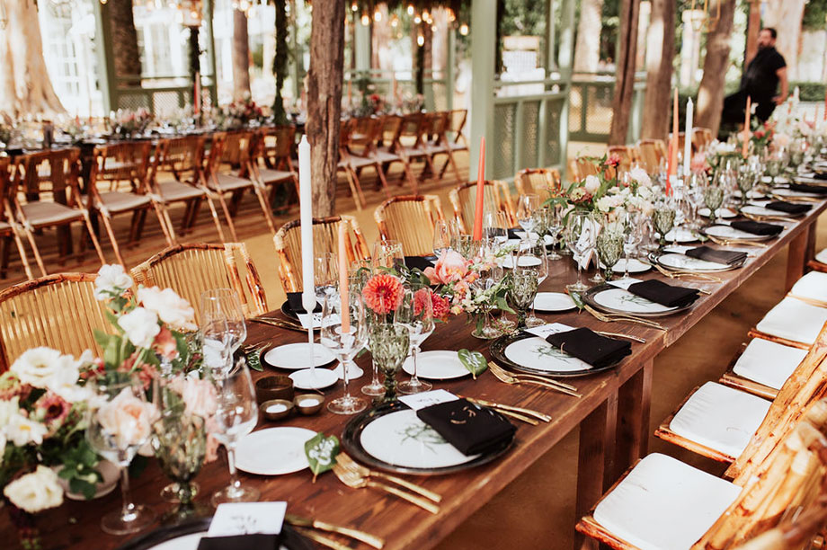 Les fleurs, les tables en bois ou en verre, des éléments en fer forgés et des chaises. C’est comme un TOC. Nous adorons ces meubles. Les chaises sont toujours très présentes lors de nos évènements. Nous les utilisons pour souhaiter la bienvenue, pour la cérémonie, pour les espaces de danse… chez Weddings With Love, nous utilisons énormément les chaises. Nous en avons toute une collection. C’est très amusant, nous ignorons comment nous en sommes arrivées là, mais nous n’avons quasiment plus de place pour les stocker. Nous en avons peut-être plus de 60, et nous les avons toutes restaurées nous-même. En plus de ces éléments, les linges de tables sont aussi très importants pour nous. Des matières comme le lin, pour une nappe ou des serviettes, nous en avons toujours.