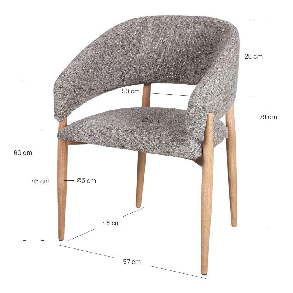 Dimensions : 59x53x79 cm | Hauteur de l’assise : 45 cm | Accoudoirs : 60-76 cm