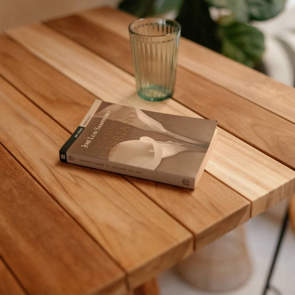 Fabriqué en bois de teck à lattes (lisse) avec finition naturelle.