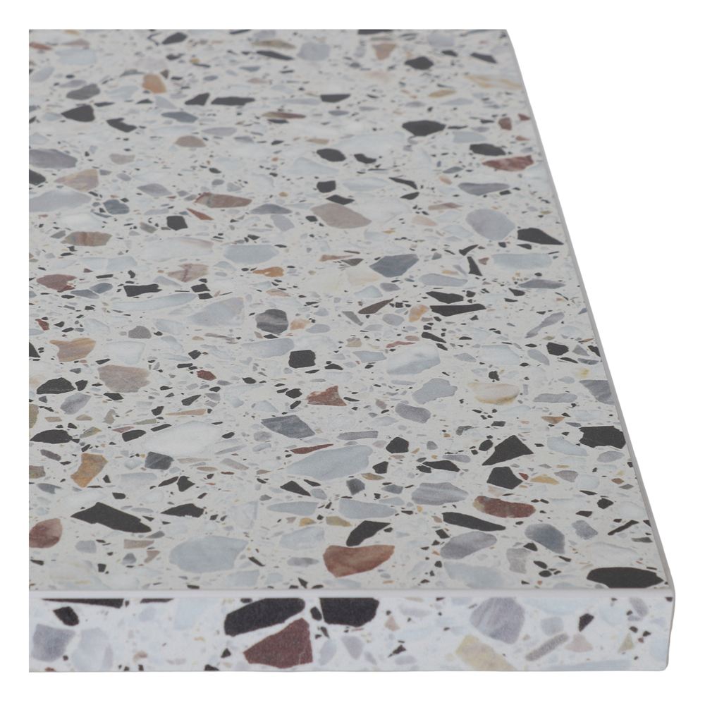 Finition imitation terrazzo multicolore.