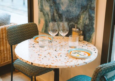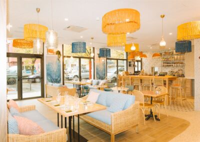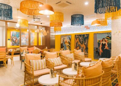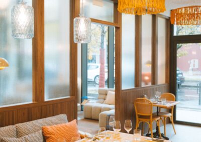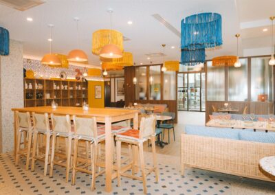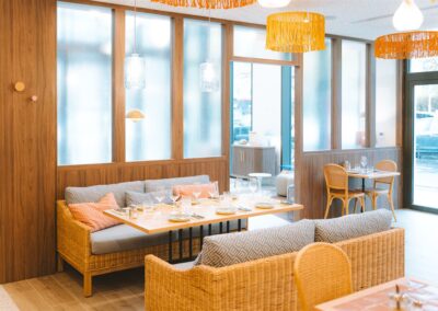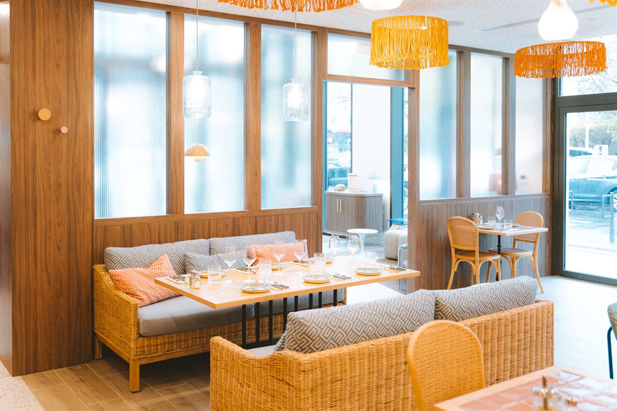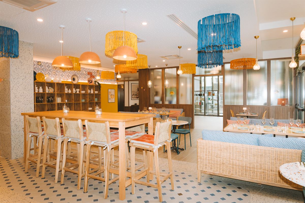Envie d’une escapade ensoleillée, savoureuse et conviviale ? Un voyage culinaire au cœur des pays les plus ensoleillés d’Europe vous attend chez Bikube. Le restaurant disposant d’une salle et d’une terrasse a été pensé et aménagé par l’Agence NovaOm basée à Paris, Architecture d’intérieur et décorateur, spécialisée dans l’hôtellerie qui a sélectionné une partie du mobilier de Misterwils pour créer une atmosphère chaleureuse avec notamment des tables en carrelage et en bois, des tabourets, chaises en rotin naturel et en bois, ce qui apporte à ce lieu une ambiance naturelle, tamisée et chaleureuse.