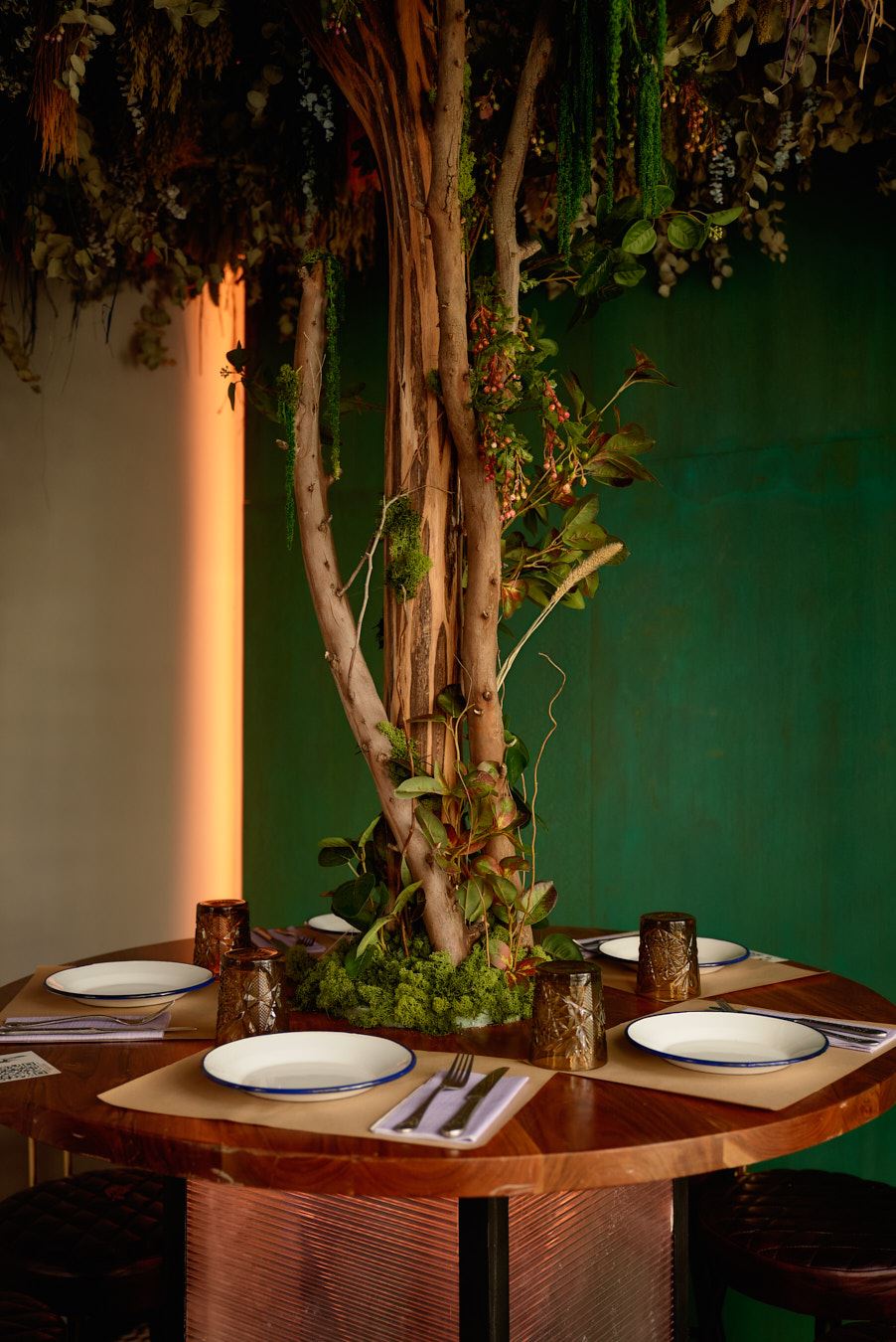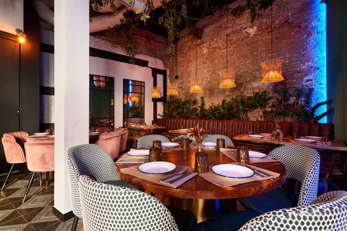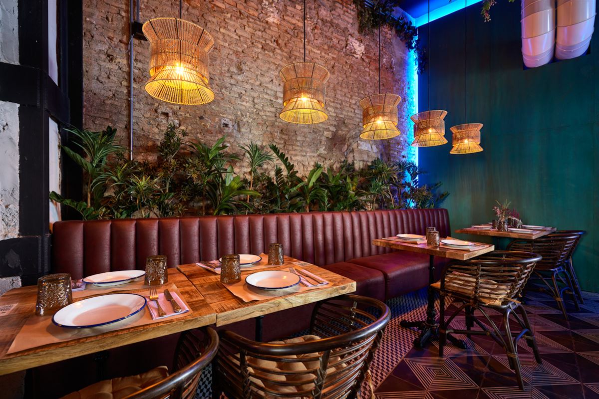 Ce nouveau restaurant de 400 mètres carrés a une capacité de 100 personnes. Répartis sur deux étages où s’affiche leur décoration originale, avec un style très éclectique, où prédominent les couleurs sombres, les tons bruns et la végétation abondante. Le mobilier, signé MisterWils, est l’un de leurs secrets pour créer cette atmosphère magique que l’on retrouve dans tous leurs établissements. Avec des chaises tapissées, des tables rondes, des tabourets en cuir et en métal doré, un banc recouvert de tissu marron, ils ont su créer différents environnements, où vous pourrez vous détendre et passer une excellente soirée.