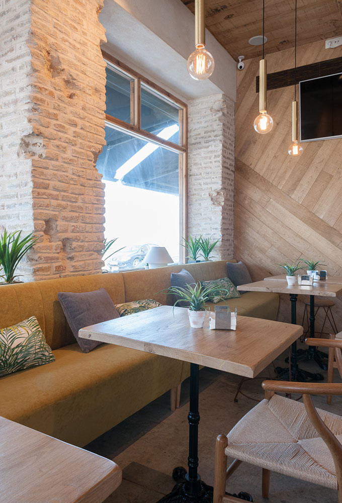 Pour cette réalisation, notre catalogue a fourni les produits suivants : les chaises Wishbone roble et Africa, les tabourets Baltimore et Careme, les tables Conil, Kronos et Letty, les bancs Murano personnalisés, les appliques Obama et Oxford, les lampes Penelope, ainsi que des miroirs et des coussins conçus spécialement pour ce projet.