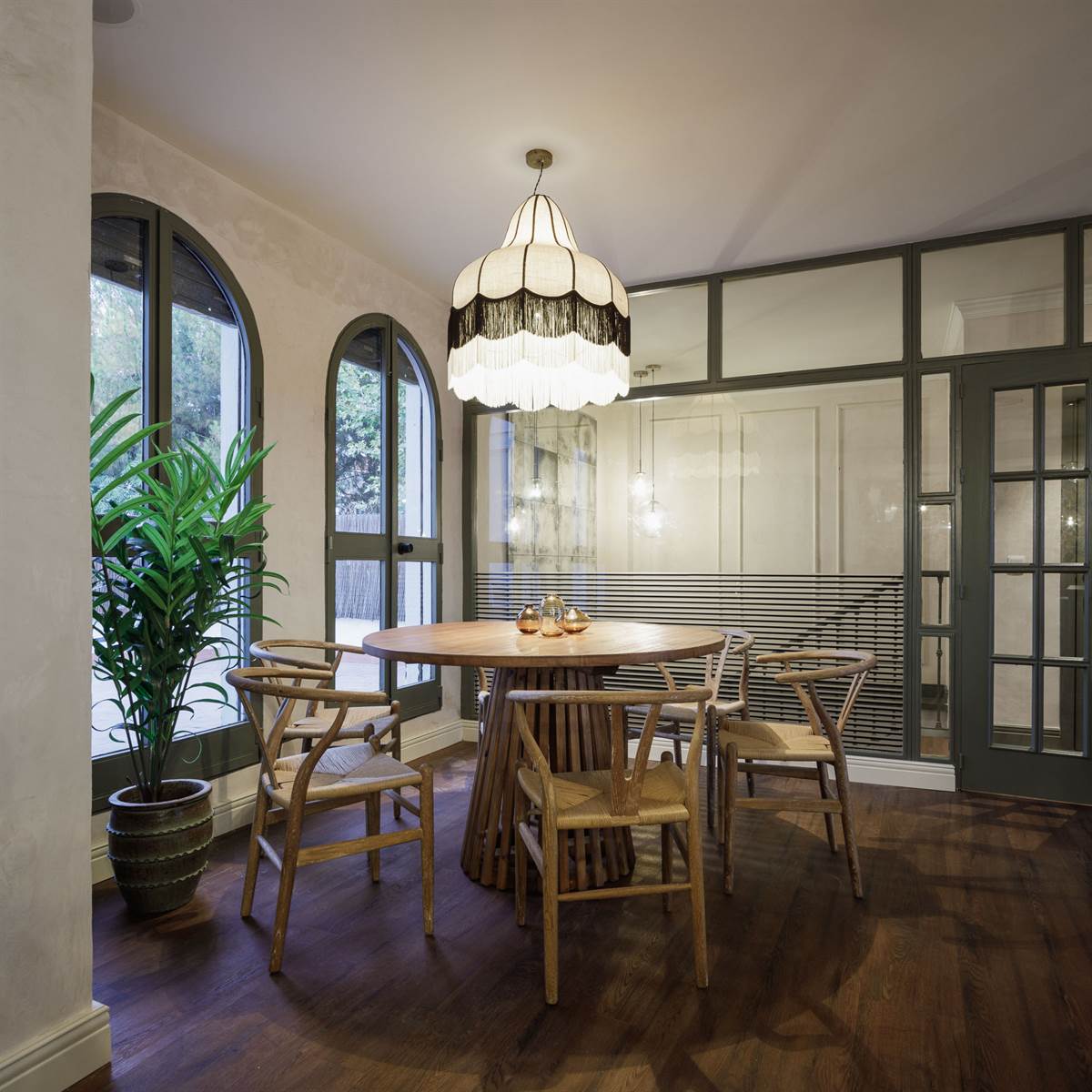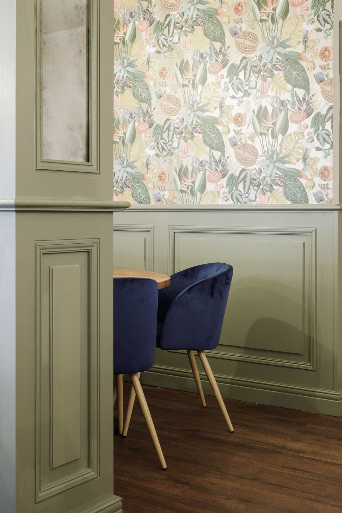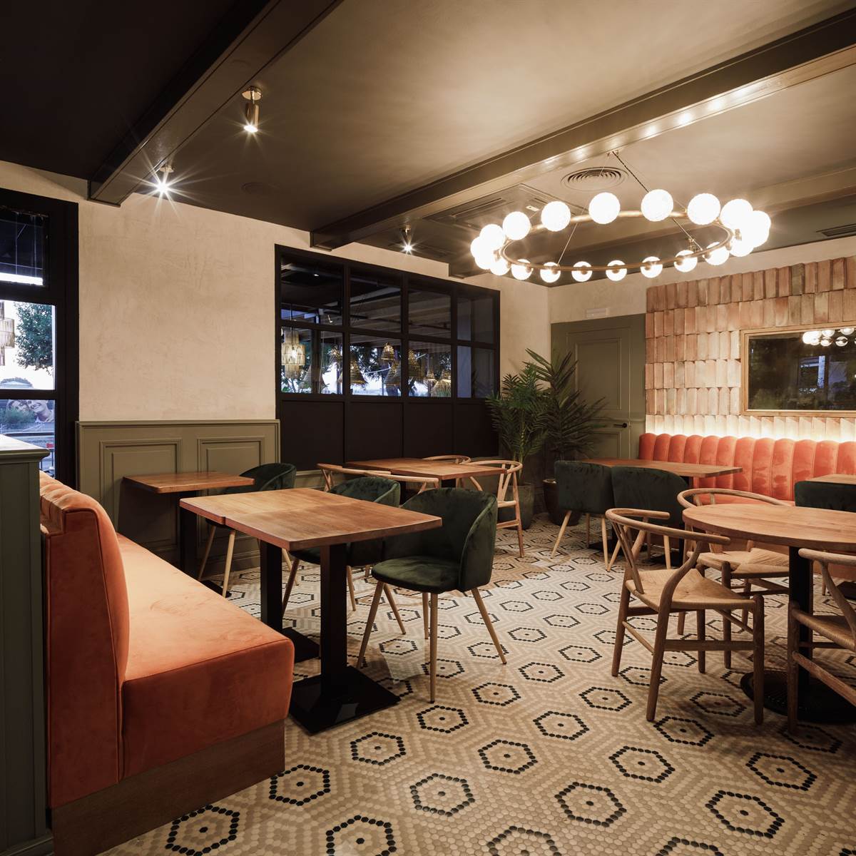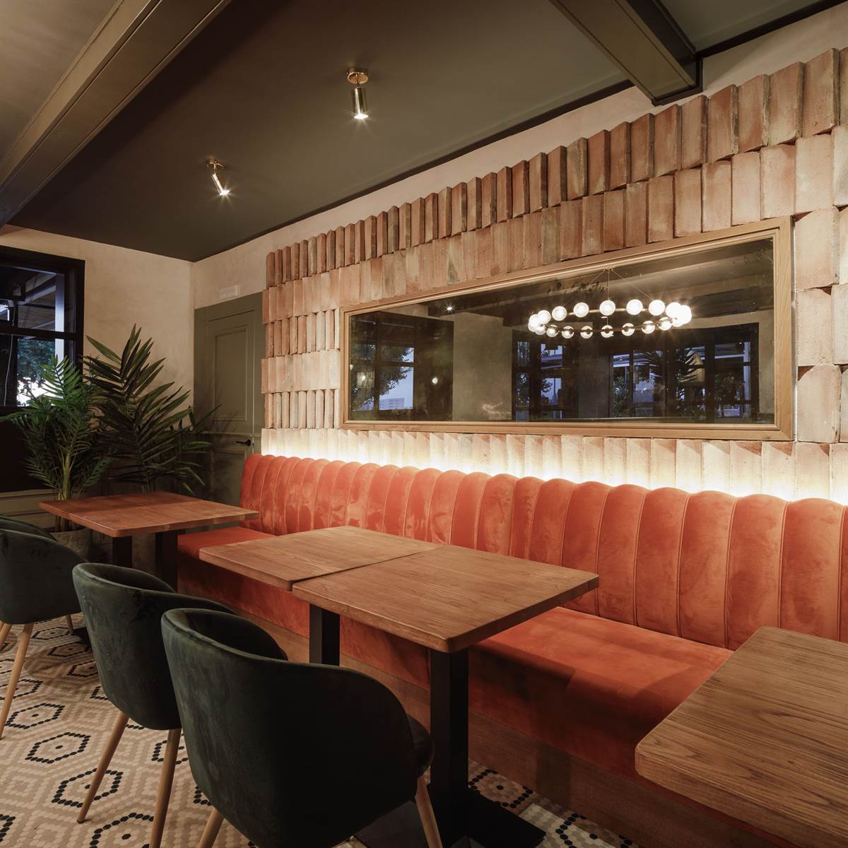 L’établissement, composé de différents espaces bien harmonisés entre eux, dispose de deux terrasses extérieures de style méditerranéen. L’intérieur partage sur ses deux étages des détails tels que des tons verdâtres, des plinthes ou encore des moulures. Par ailleurs, l’intérieur et l’extérieur intègrent des pots de végétation pour apporter fraîcheur et nuances.