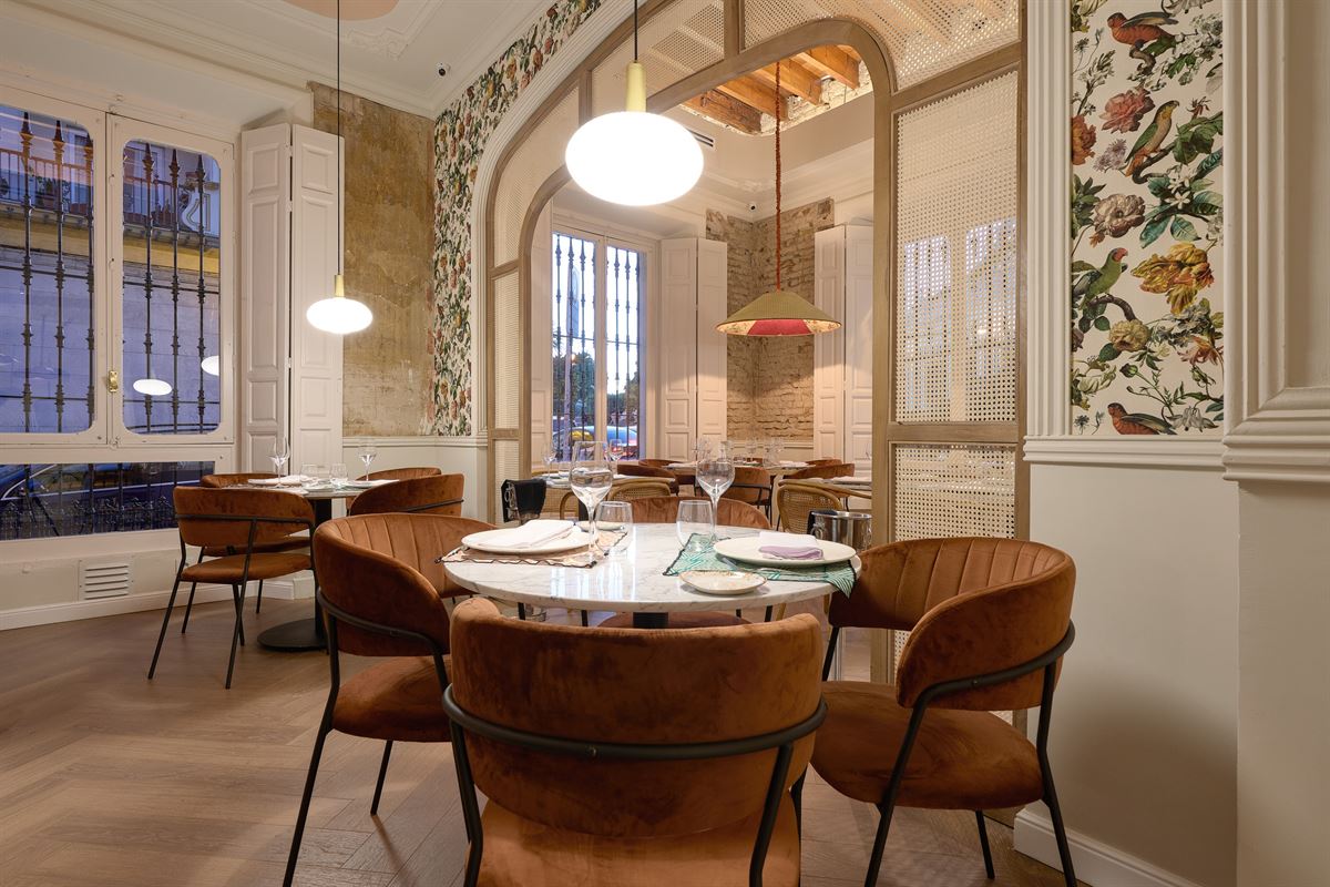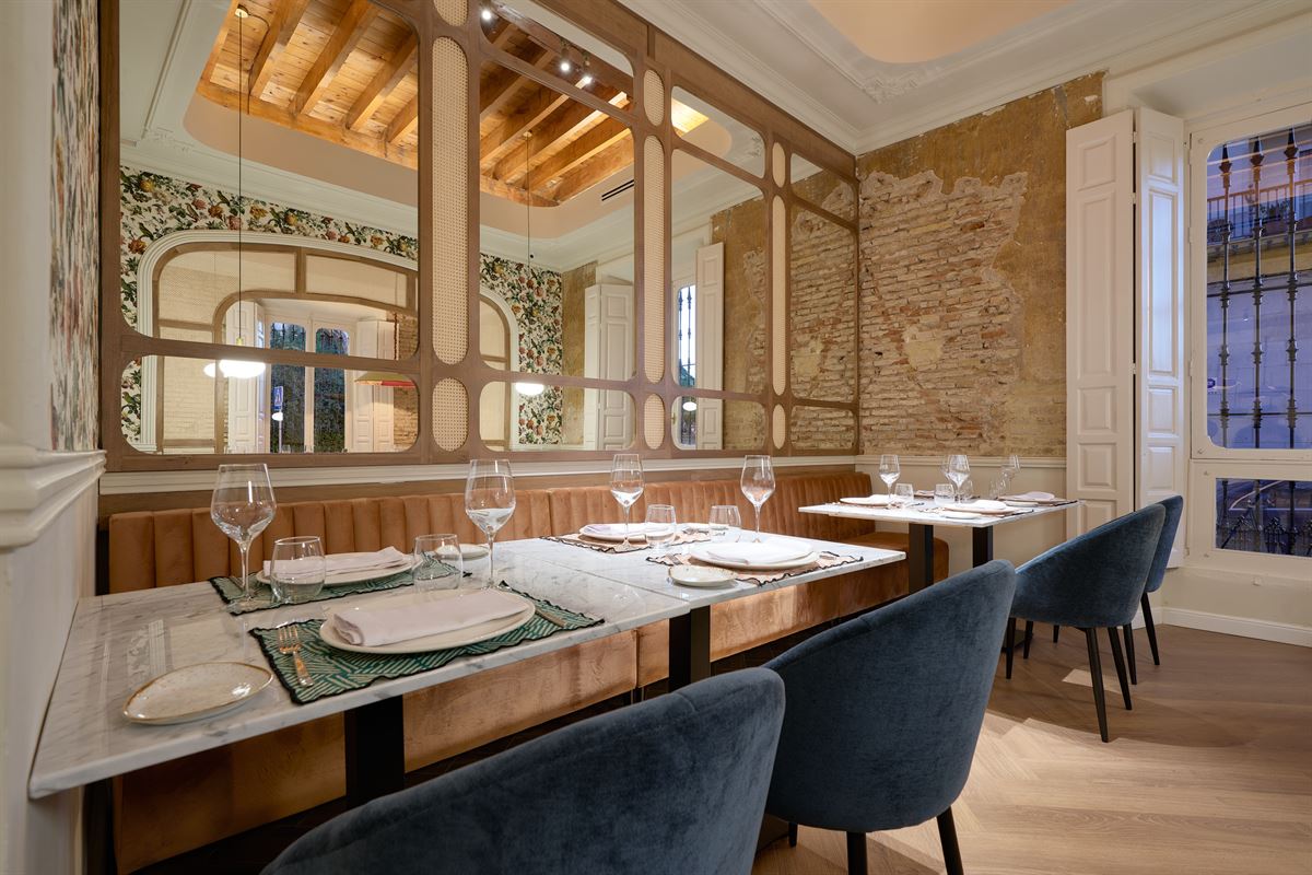 Ce restaurant est situé dans une maison sévillane dans le plus pur style de l’architecture andalouse, son intérieur est une véritable explosion de détails, du papier peint à motifs sur les murs, en passant par le magnifique miroir en bois jusqu’au choix du mobilier. L’ensemble est sublime, sélectionné avec beaucoup de goût et tout à fait en accord avec le concept de théâtralité propre à l’opéra. Selon cette même idée, la carte du restaurant est divisée en actes d’opéra, en commençant par le Prélude et le Premier acte, et en poursuivant avec l’Entracte, Concertante, Cavattina, jusqu’au Final.