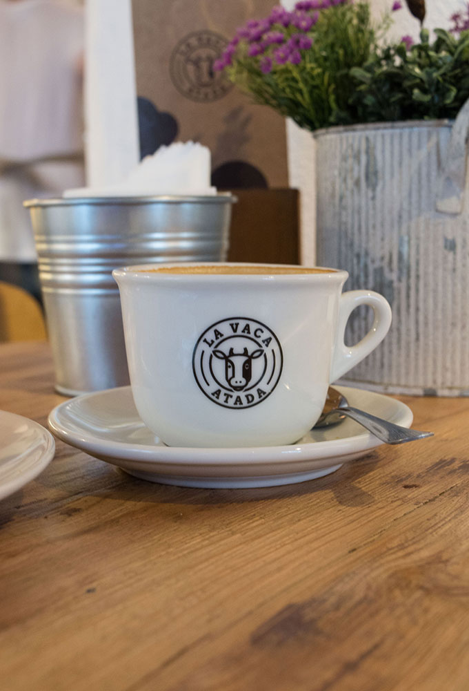 Le nom si étrange de « Vaca atada » (la vache attachée) vient d’un vieux proverbe argentin qui raconte qu’à l’époque où les familles aisées voyageaient en bateau jusqu’en Europe avec leurs enfants, elles emportaient toujours avec elles une vache, afin que les plus petits ne manquent pas de lait frais pendant le voyage. L’animal voyageait attaché, dans la soute du bateau. L’expression « vaca atada » signifie donc en Argentine d’être sûr d’avoir à manger.