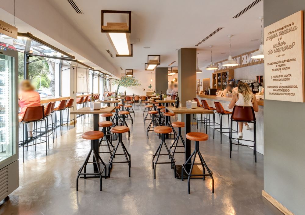 Ouvert du lundi au dimanche de 7h à 21h30, le groupe Hermanos Martín offre à ses nouveaux clients une expérience adaptée à leurs attentes, en reprenant à leur compte tous les codes de l’art traditionnel de faire du pain, décliné en plus de 50 spécialités différentes, parmi lesquelles le pain au quinoa, au soja, à l’avoine, aux céréales, au seigle ou sans gluten. Les boulangers de San Tomás préparent eux même tous leurs pains, pour que leurs clients puissent profiter chaque jour de pain récemment sorti du four, en plus des tartes et viennoiseries artisanales. Dans l’espace café, les clients peuvent goûter grande variété de tartines, quiches, pains garnis au fromage ainsi que de la charcuterie ibérique de premier choix, le tout accompagné de vins du pays ou de bières d’importation.