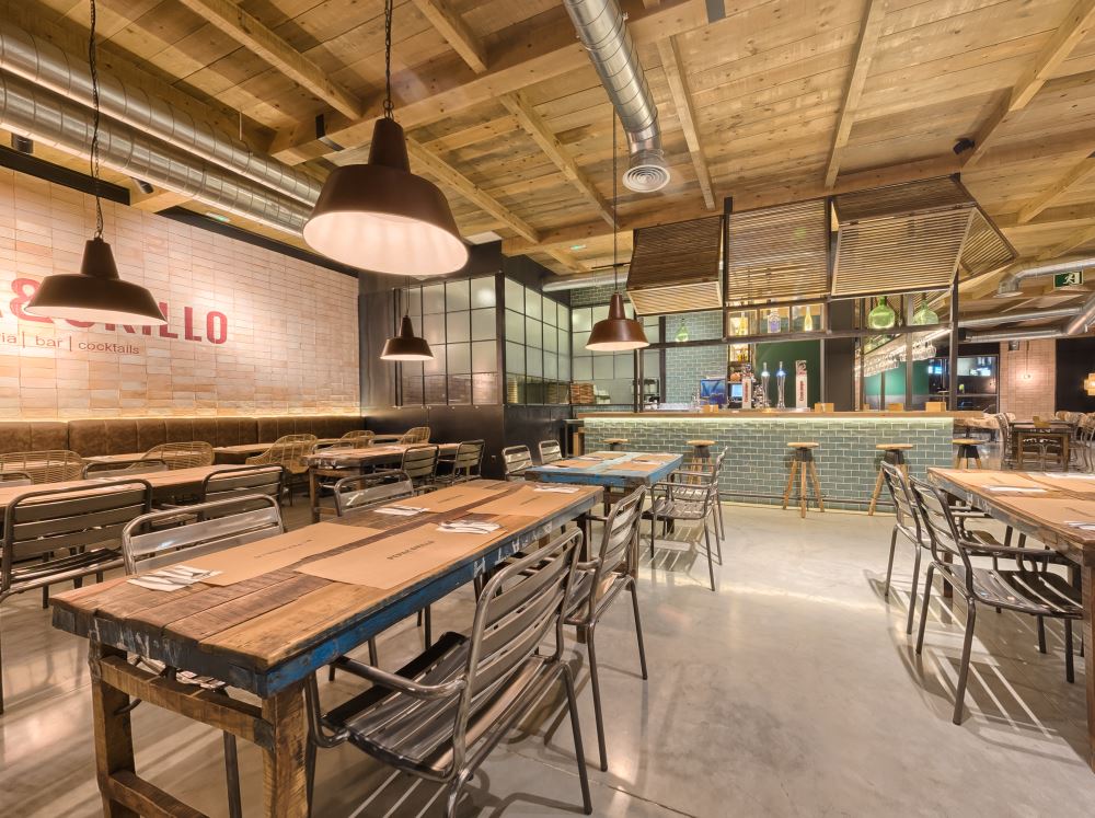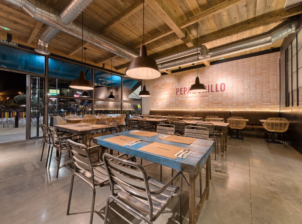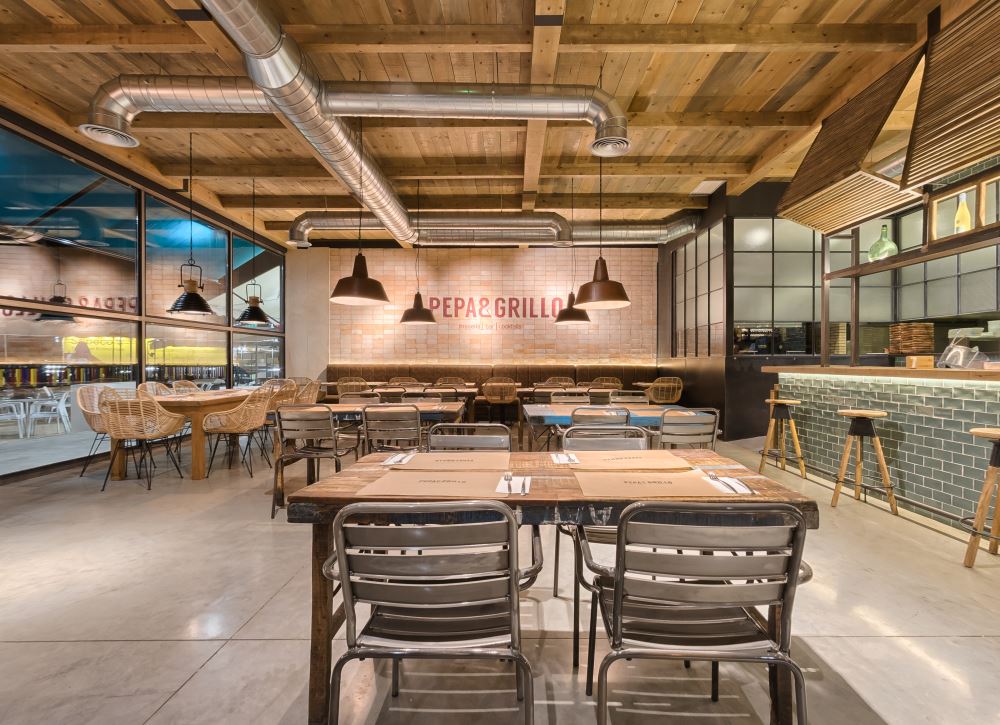 Dans le Parc Commercial Gines Plaza, Pepa & Grillo. un nouveau concept de grill-restaurant entièrement décoré par nos architectes d’intérieur Bruno Bermudez et Adrian Gomez a fait son apparition.