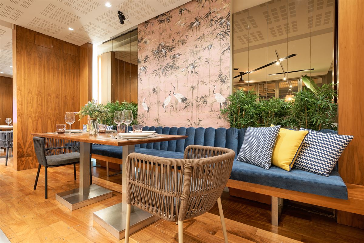 Cet espace rénové est composé de plusieurs pièces intérieures, un magnifique porche et un sublime jardin, le tout décoré et meublé avec beaucoup de style. La décoration de chaque salle est pensée dans les moindres détails pour accueillir un grand nombre de convives ou pour y tenir une soirée plus intime. Les meubles choisis s’harmonisent parfaitement avec l’architecture des lieux et le concept du restaurant. Ils ont été rigoureusement sélectionnés pour que les convives puissent profiter non seulement de la gastronomie proposée dans son menu, mais aussi de l’atmosphère créée, le tout dans un confort optimal. En conclusion, le groupe Lantana a su créer, en collaboration avec Persevera Producciones, un espace chaleureux, conçu avec beaucoup de goût, où vous pourrez profiter d’une magnifique soirée.