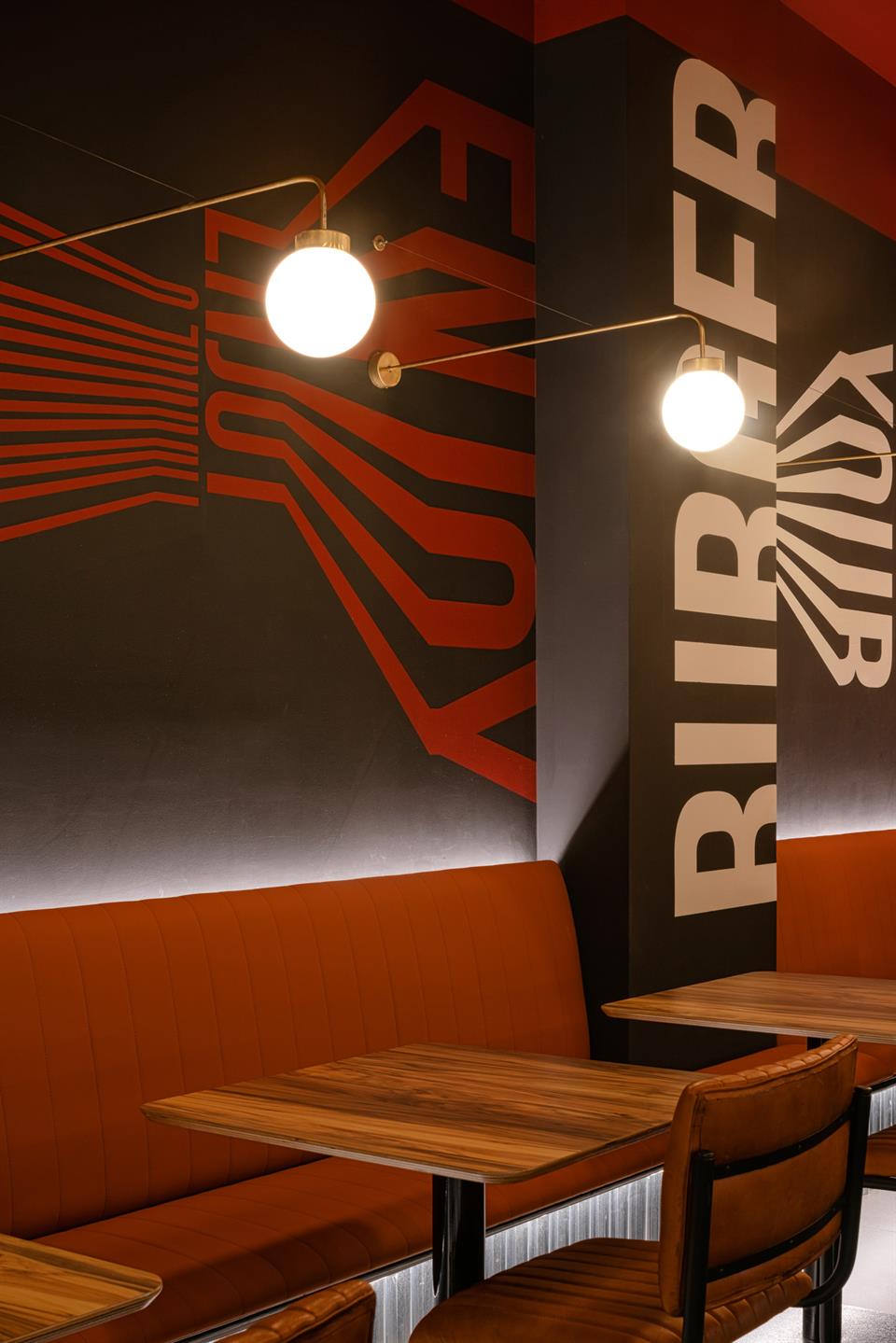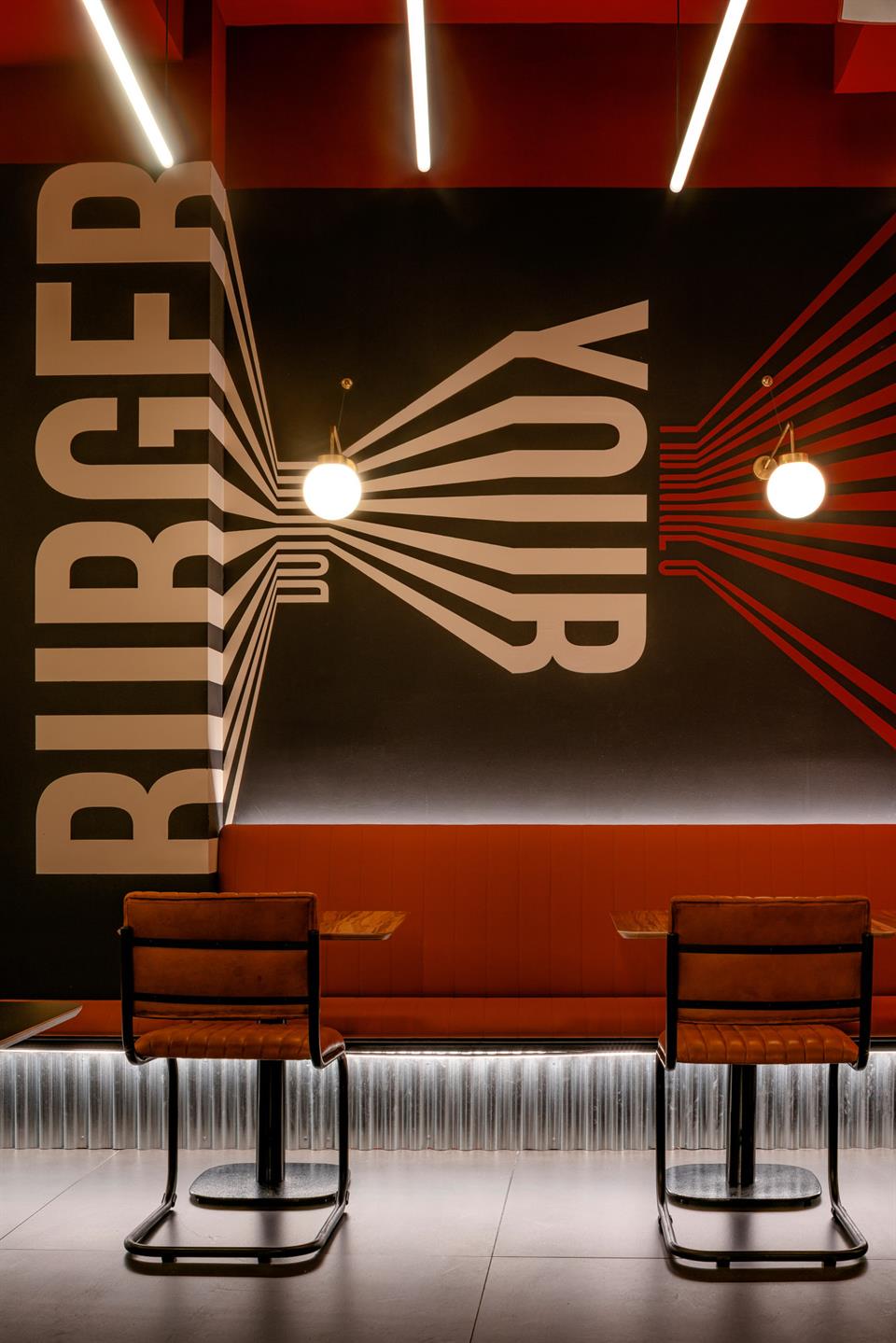 Avec ces idées sur la table, le projet cherche à renforcer l’expérience client, qui commencerait par la possibilité de créer son propre burger, en pouvant choisir chaque partie, du pain à la sauce. Cette interaction entre le client et le personnel de cuisine qui conçoit le menu se traduit par un projet vivant, riche en matières et en contrastes, avec un éclairage soigné et chaleureux avec un léger air rétro.