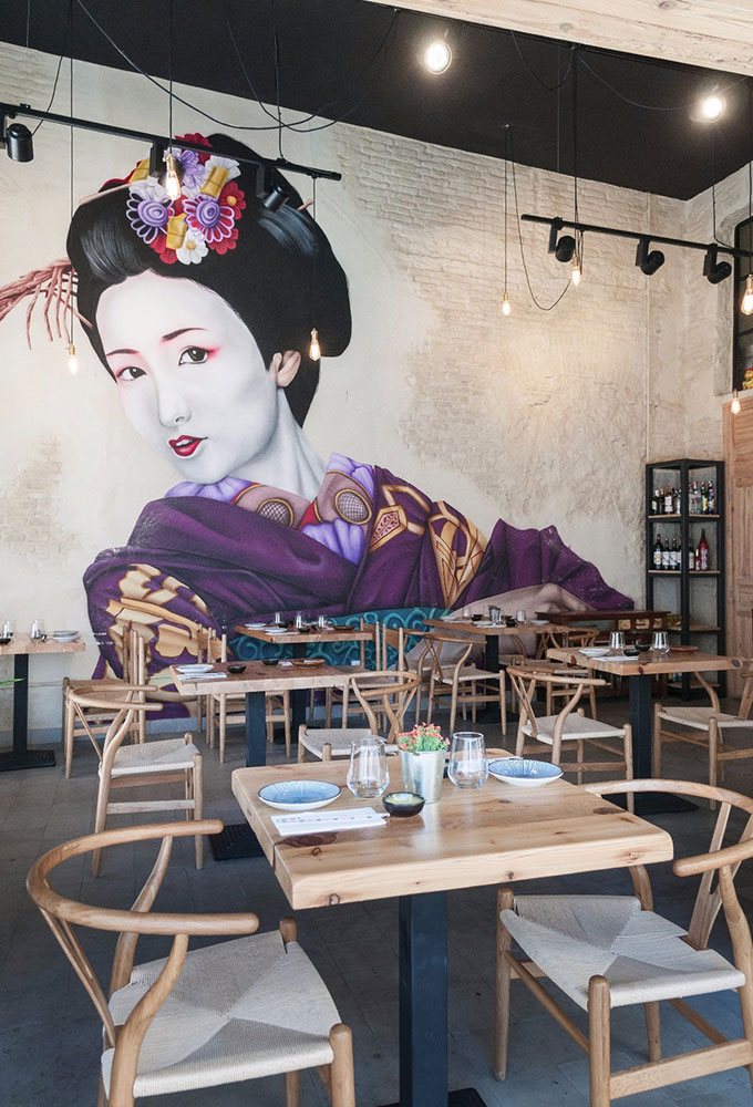 La décoration des lieux reflète une ambiance cosmopolite et moderne, oeuvre de notre architecte d’intérieur Bruno Bermúdez. Le mur principal a été restauré et désormais, une impressionnante peinture murale le recouvre, devenu le symbole et l’identité du restaurant.