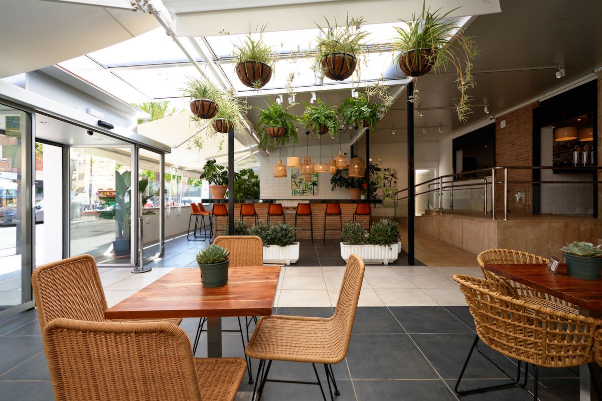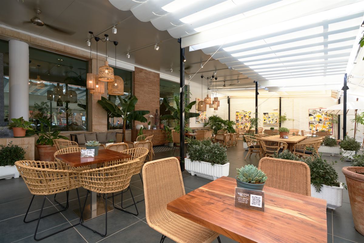 Il dispose d’un espace extérieur vitré où vous pourrez profiter d’un espace des plus lumineux lumineux et très tropical grâce aux plantes qui donnent une touche de couleur et de fraîcheur à l’ensemble. Dans cet espace, les chaises en fibre naturelle, rotin et cannage, le bar avec tabourets en cuir, et la variété des luminaires sont très frappants. Profiter d’une soirée entourée d’exotisme, c’est possible.