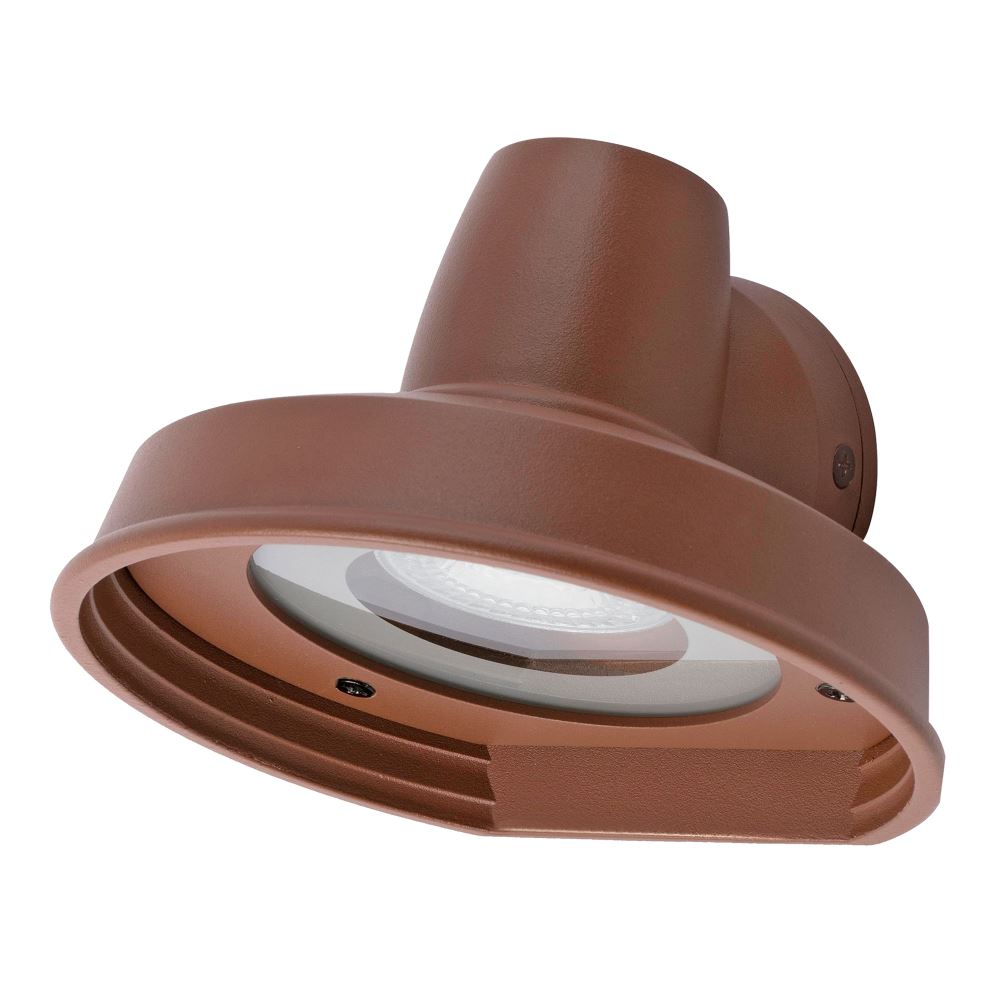 Applique murale pour extérieur de style industriel, fabriquée en aluminium et verre. Finition marron texturisé.