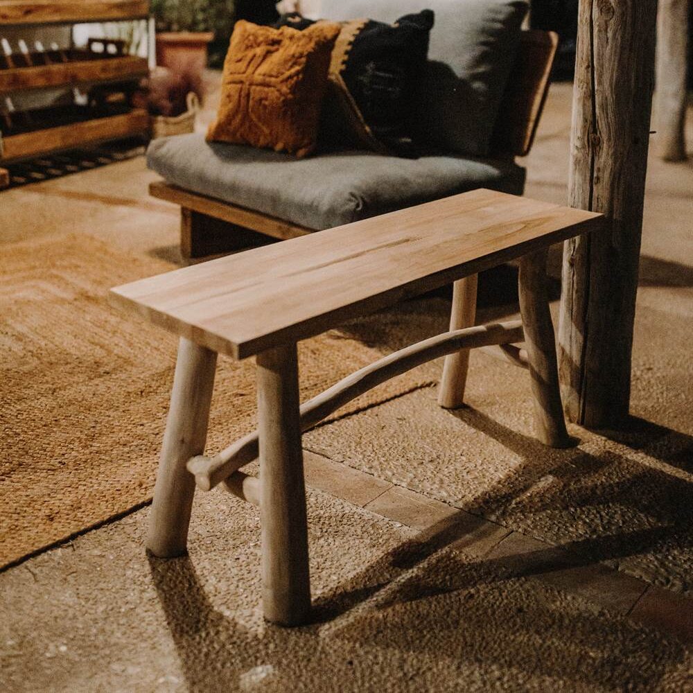 Banc de style rustique vintage fabriqué en bois de teck.