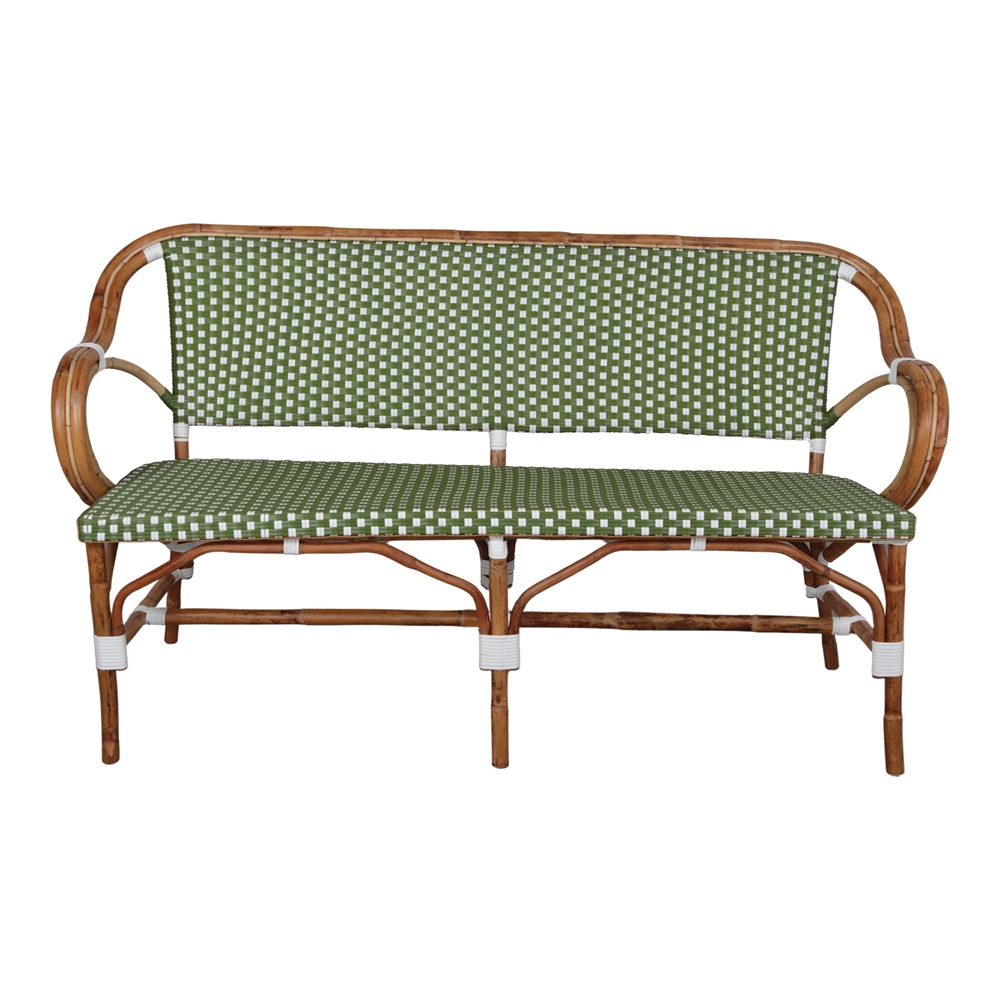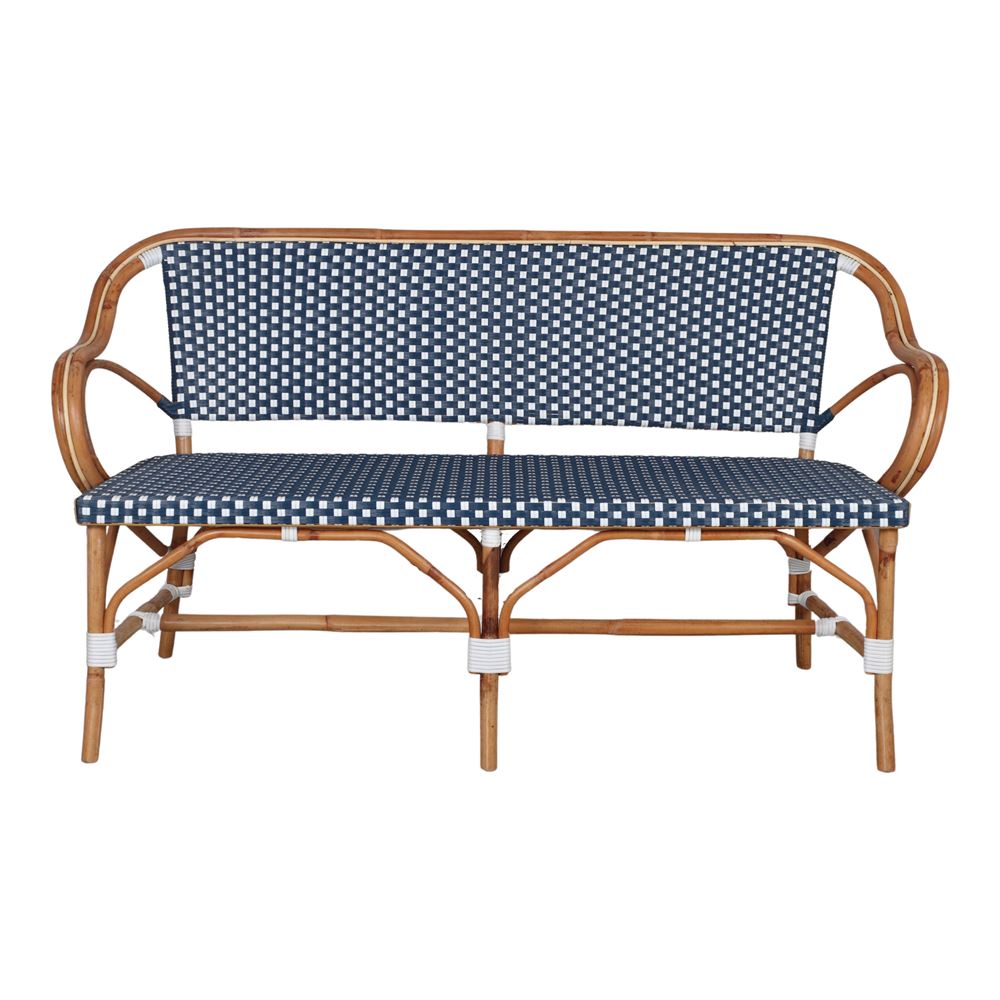 Le banc en rotin Isona est parfait pour les espaces de style bistrot. Disponible en rouge, bleu et vert, ce banc confortable est fabriqué en bambou et en fibre de rotin synthétique.