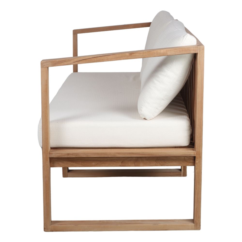 Structure en bois de teck massif avec finition naturelle.