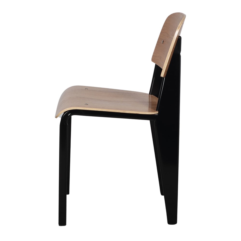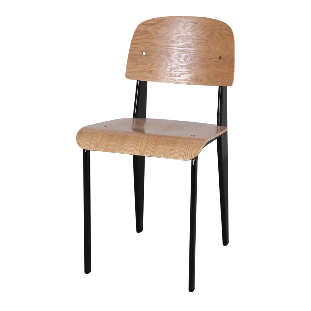Chaise en bois de style moderne en contreplaqué et structure en acier. Ce design de chaise est inspiré de l’emblématique chaise « Standard » conçue par le français Jean Prouvé, un modèle très élégant idéal pour n’importe quelle pièce de votre maison. Elle peut également être utilisée dans un restaurant, et associée à nos tables de style contemporain par exemple.