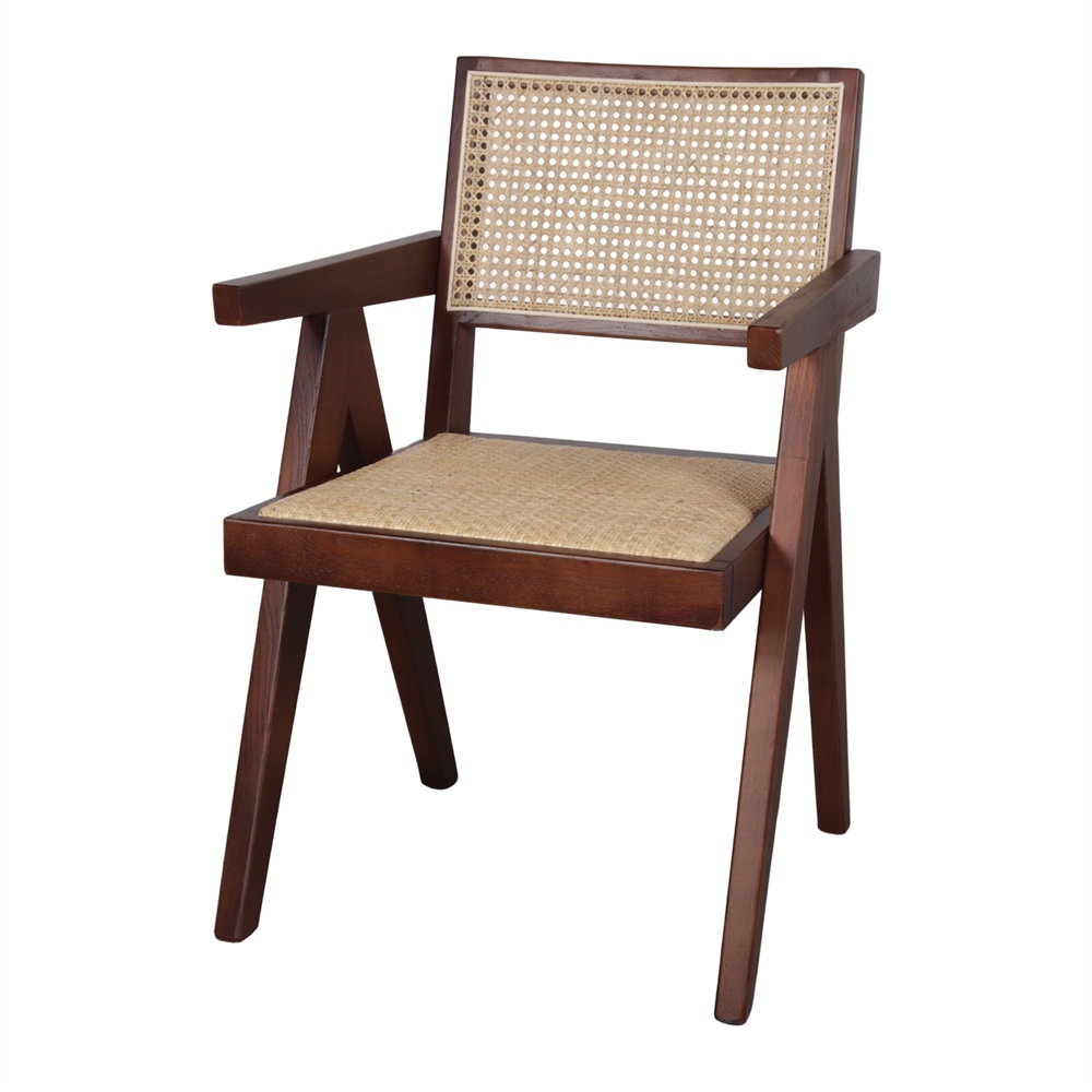 Chaise de style Rationaliste, réplique de la chaise iconique Chandigarh créée par le designer suisse Pierre Jeanneret pour le projet d’urbanisme dessiné par Le Corbusier dans la ville indienne de Chandigarh en 1951 (inscrite au Patrimoine de l’Humanité en 2016). Asseyez-vous dans une des plus grandes tendances de la saison avec nos chaises en bois et en rotin naturel. Le rotin est sur le point d’arriver dans tous les intérieurs et ce n’est pas une surprise : son tissage solide donne en effet de la texture au look et a été utilisé dans certains des designs les plus iconiques de tous les temps.