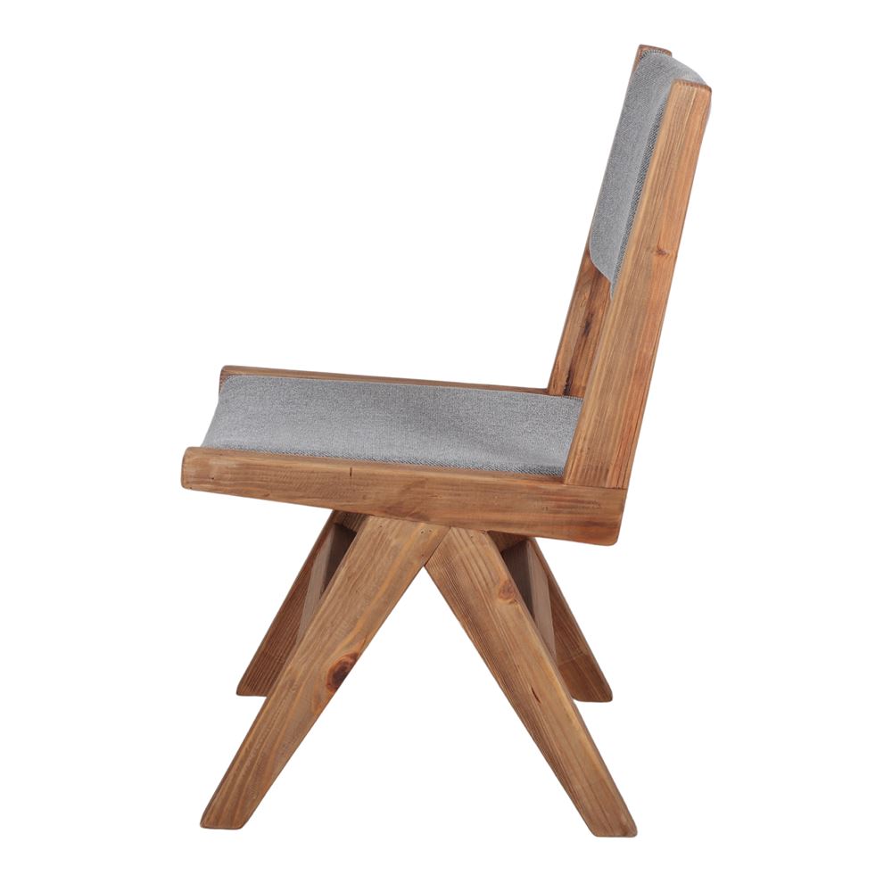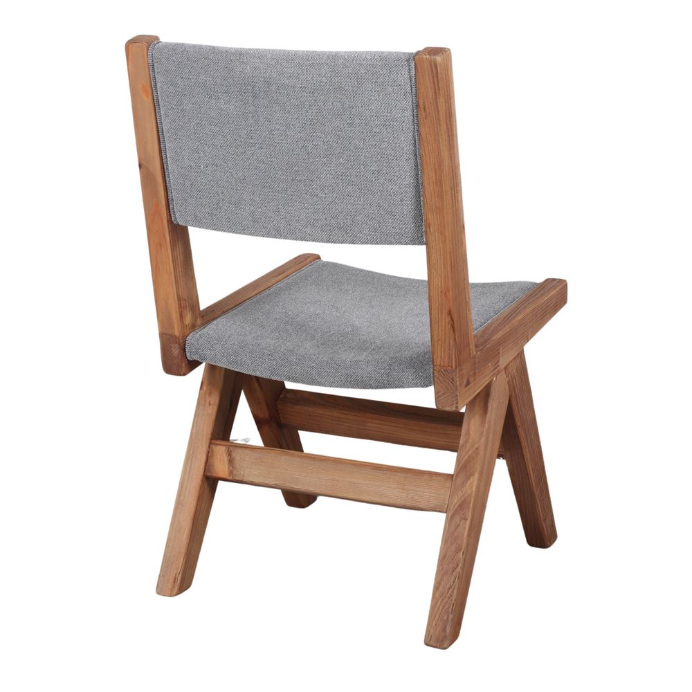 Fabriquée en bois de pin recyclé et assise et dossier en textile.
