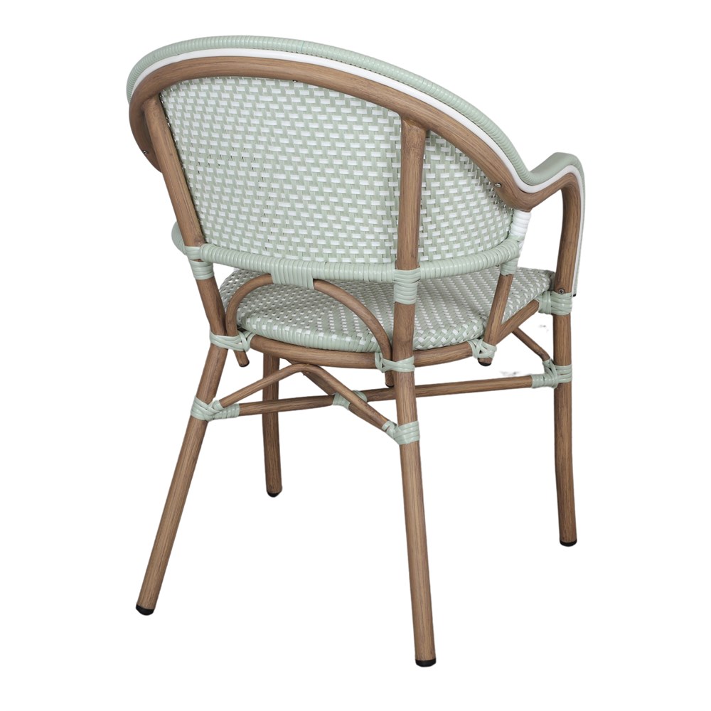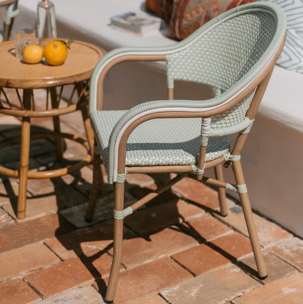 Notre chaise d’extérieur Noemi, de style Bistro, est fabriquée en aluminium avec une finition imitation bambou en fibre synthétique. Le rotin synthétique est sur le point de s’imposer sur nos terrasses, et ce n’est pas une surprise : son tissage solide donne de la texture au look et a été utilisé dans certains des designs les plus emblématiques de l’histoire de la décoration. Sur cette chaise d’extérieur, le rotin synthétique apporte une touche plus contemporaine que le rotin traditionnel et est facile d’entretien. Idéale pour un patio, une terrasse ou un jardin. Associez-la avec d’autres meubles de style bistrot pour une combinaison parfaite. Son design unique est la recette d’une pièce originale qui donnera à votre espace une touche parisienne.