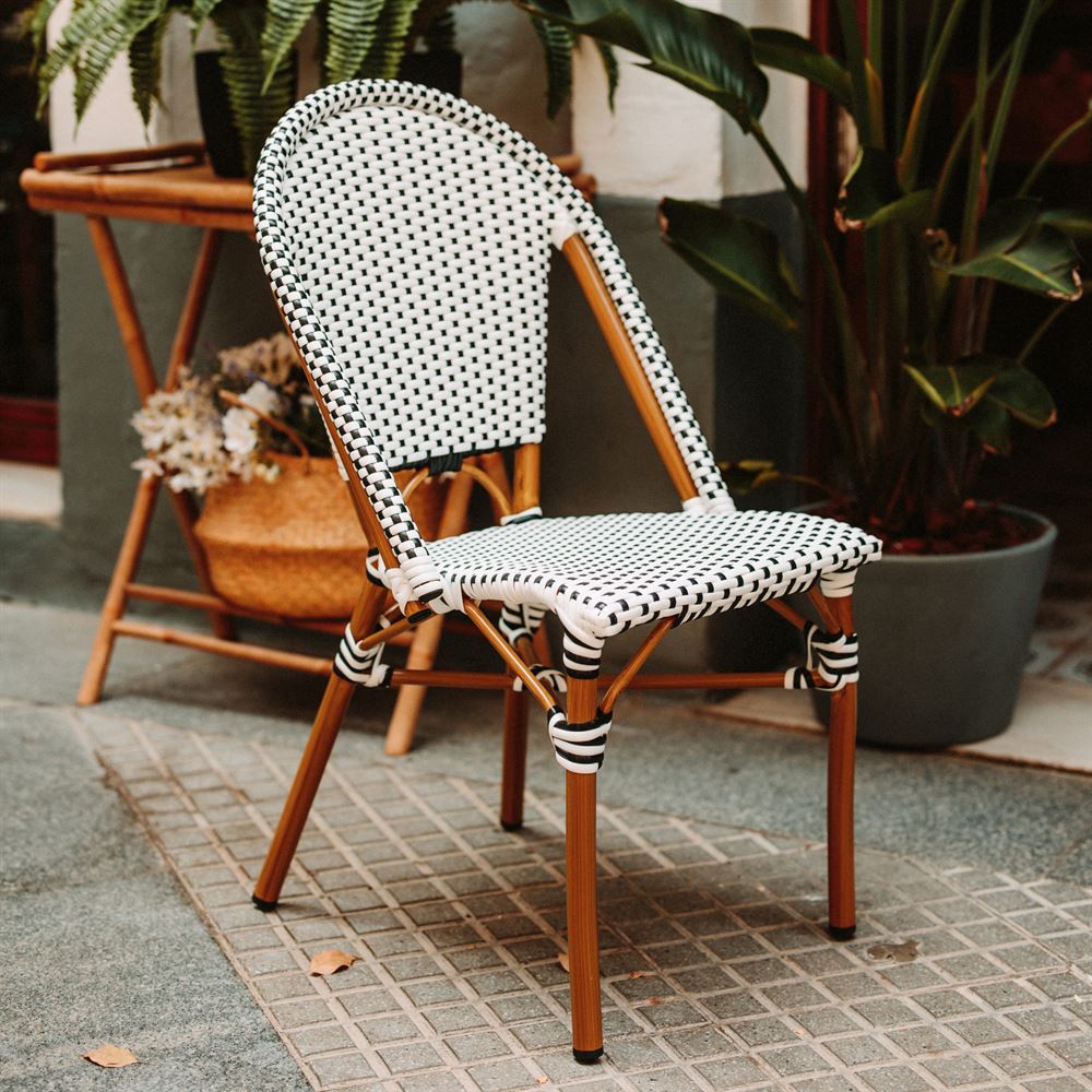 Notre chaise d’extérieur Regina de style bistrot est fabriquée en aluminium avec une finition imitation rotin et fibres synthétiques. Le rotin synthétique est sur le point de faire s’imposer dans n’importe quel extérieur à la mode, et ce n’est pas une surprise : son tissage solide ajoute de la texture au look et a été utilisé dans certains des designs les plus emblématiques de l’histoire du design d’intérieur. Dans cette chaise d’extérieur, le rotin synthétique apporte une touche plus contemporaine que le rotin traditionnel et est facile d’entretien. Parfaite pour un patio, une terrasse ou un jardin. Associez-la avec d’autres meubles de style bistrot pour une combinaison parfaite. Son design unique est la recette d’une pièce originale qui donnera à votre espace une touche très bistro.