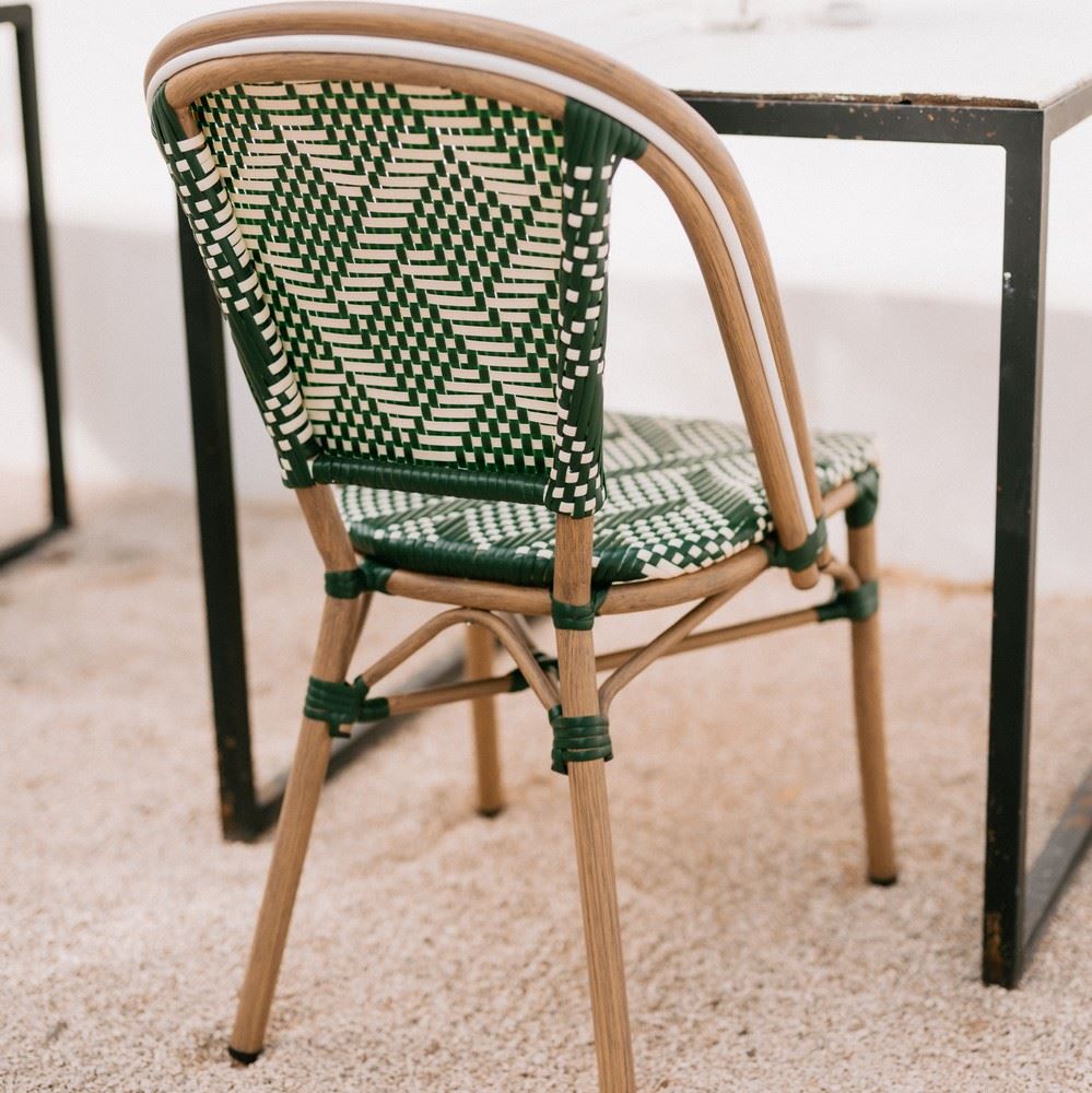 Notre chaise d’extérieur Today, de style Bistro, est fabriquée en aluminium avec une finition imitation rotin et fibre synthétique. Le rotin synthétique est sur le point de s’imposer sur toutes les terrasses, et ce n’est pas une surprise : son tissage solide donne de la texture au look et a été utilisé dans certains des designs les plus emblématiques de l’histoire de la décoration. Sur cette chaise d’extérieur, le rotin synthétique apporte une touche plus contemporaine que le rotin traditionnel et est facile d’entretien. Parfait pour un patio, une terrasse ou un jardin. Associez-la à d’autres meubles de style bistrot pour une combinaison parfaite. Son design unique est la recette d’une pièce originale qui donnera à votre espace une touche très parisienne.