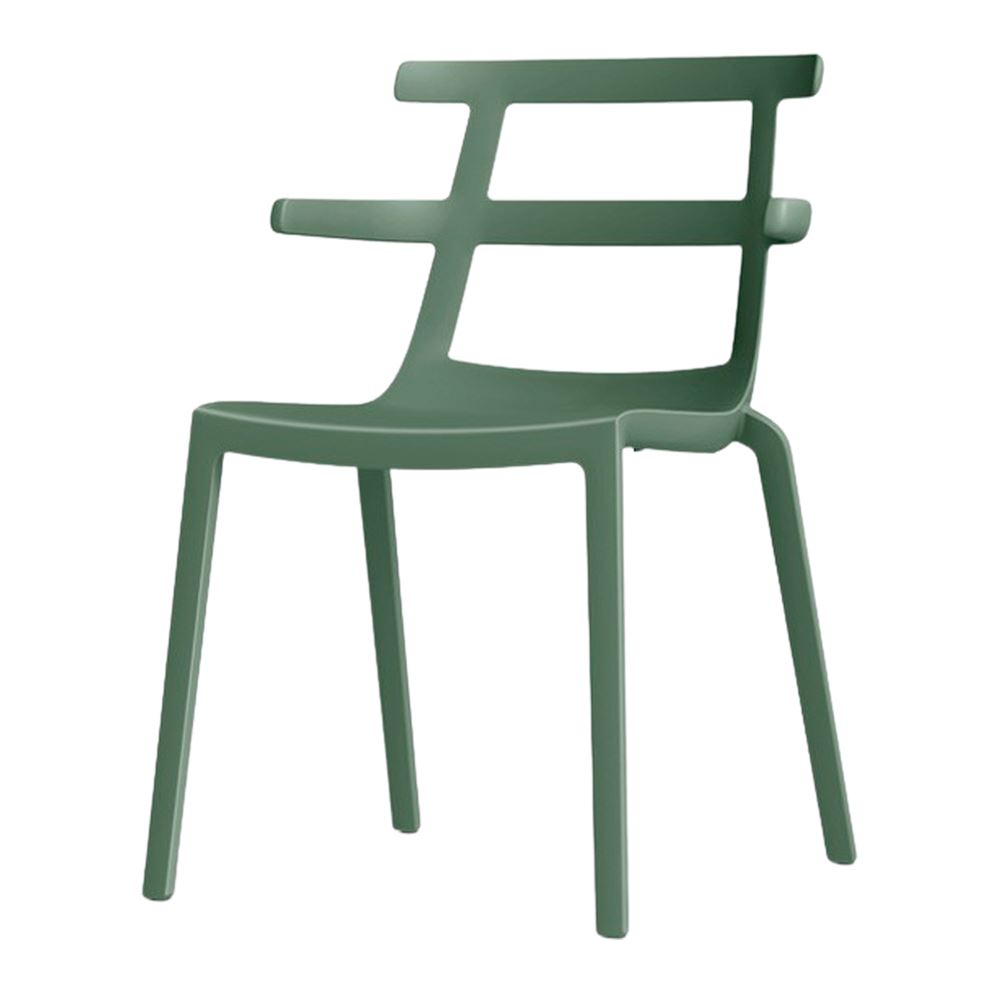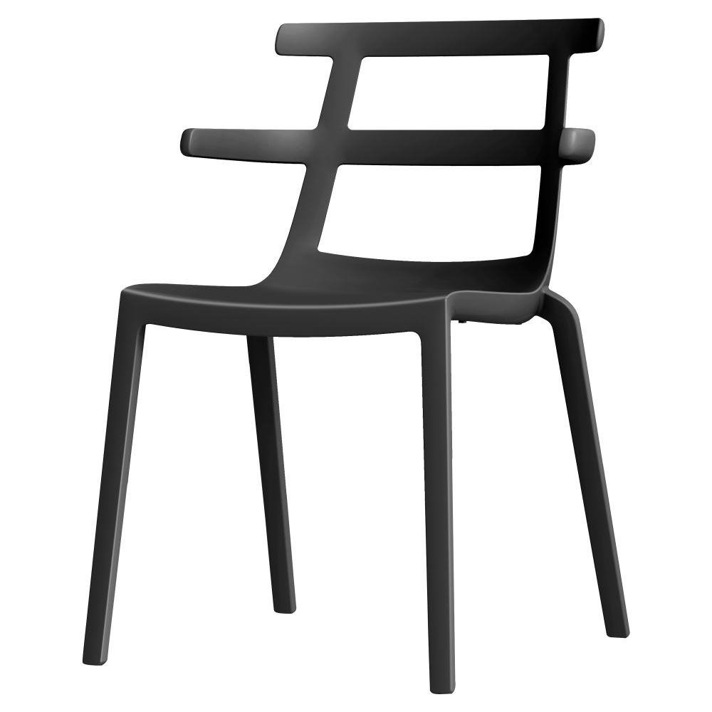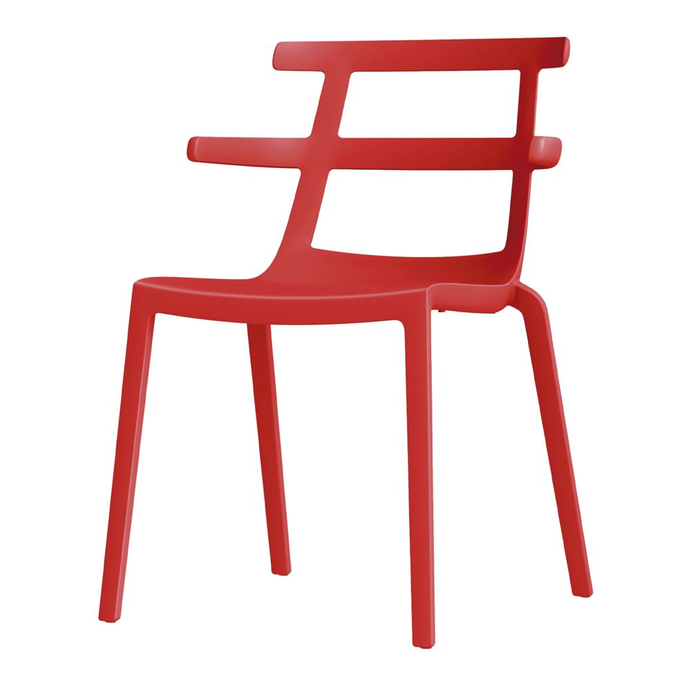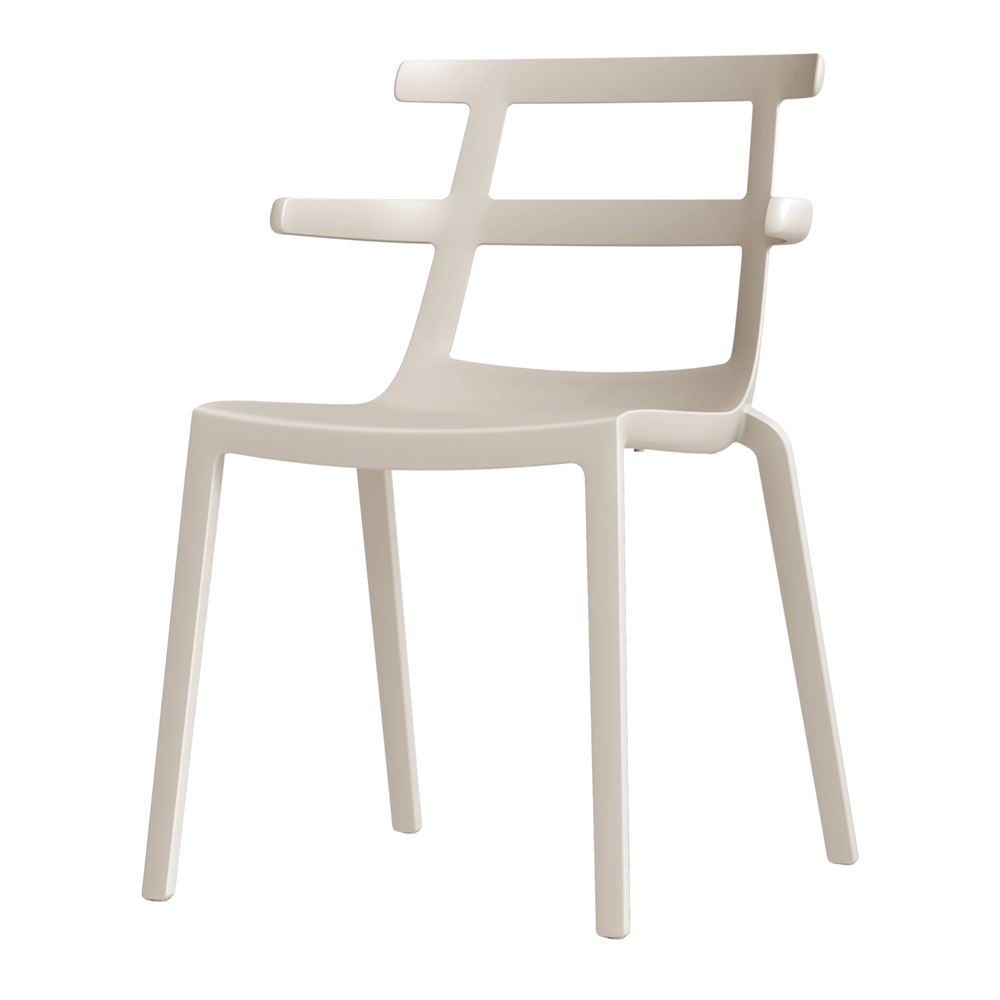 Chaise avec accoudoirs, pour intérieur ou extérieur. Fabriquée en une seule pièce de polypropylène avec fibre de verre via un procédé de moulage assisté par gaz.