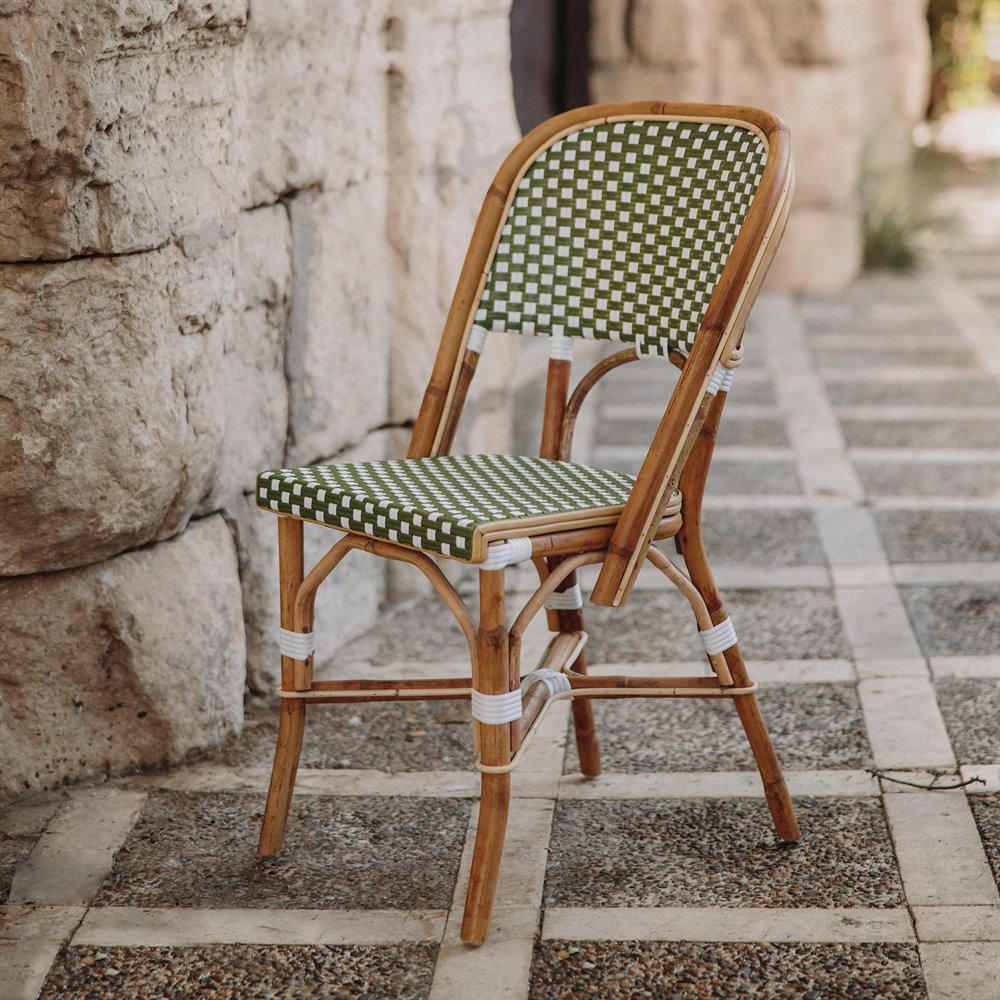 Une des tendances de la saison est notre chaise en rotin Matignon, fabriquée en rotin naturel et en fibres synthétiques. Le rotin est sur le point de faire son entrée dans tous les intérieurs à la mode et ce n’est pas une surprise : son tissage solide ajoute de la texture au look et a été utilisé dans certains des designs les plus emblématiques de l’histoire de la décoration. Dans cette chaise en rotin, le rotin synthétique apporte une touche plus contemporaine que le rotin traditionnel et est facile d’entretien. Parfaite pour n’importe quel intérieur. Associez-le avec d’autres meubles de style bistrot pour une combinaison parfaite. Son design unique est la recette d’une pièce originale qui donnera à votre espace une touche très parisienne.