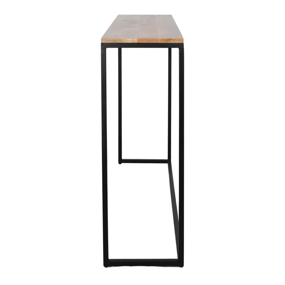 Difficile de le nier, notre console en bois et en métal Constantin ne manque pas d’élégance ! On aime son piètement épuré et moderne en métal noir qui met en valeur l’ossature en bois massif. Une console qui peut être placée dans un salon d’inspiration industrielle ou dans un environnement plus contemporain. Profitez de son large plateau pour y exposer vos objets préférés : lampe, cadres, souvenirs de voyage…