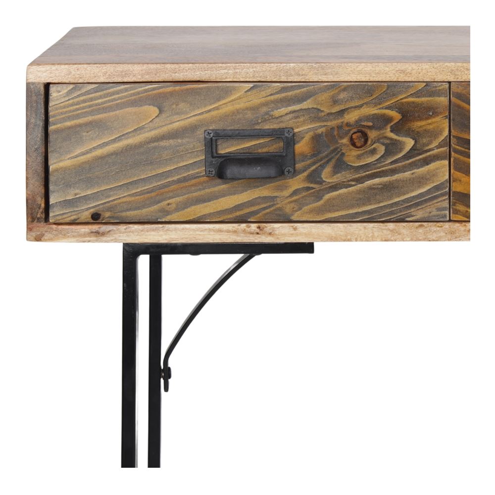 Difficile de le nier, notre console en bois et en métal de style industriel Stappy ne manque pas d’élégance ! On adore son piètement en métal noir épuré et moderne qui met en valeur sa structure en bois massif. Et sans compter sur la finition du meuble, tout en bois foncé qui laissera libre cours à votre imagination. Elle pourra être placée dans une pièce aux inspirations exotiques ou dans un environnement plus contemporain. Et côté fonctionnalité ? Dotée de tiroirs ouvrant sur de généreux espaces de rangement, cette console abritera joliment vos objets personnels, vos documents et pourquoi pas votre collection de films. Profitez de son plateau pour y exposer vos objets préférés : lampes, cadres, souvenirs de voyage…